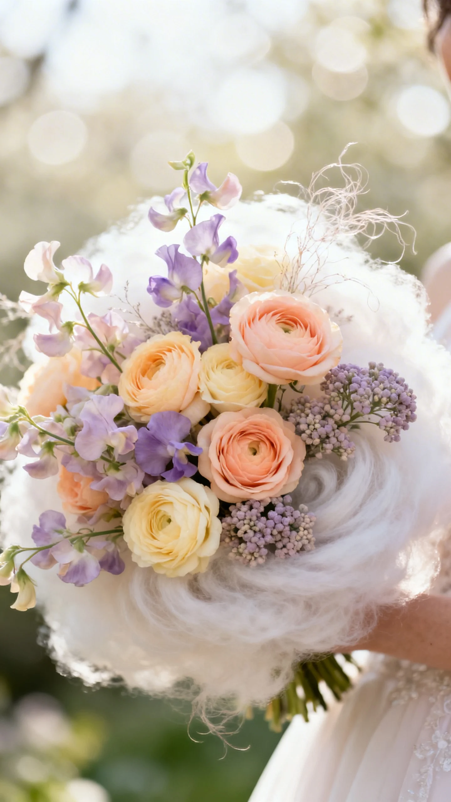 Soft pastel “cloud” bouquets with airy texture