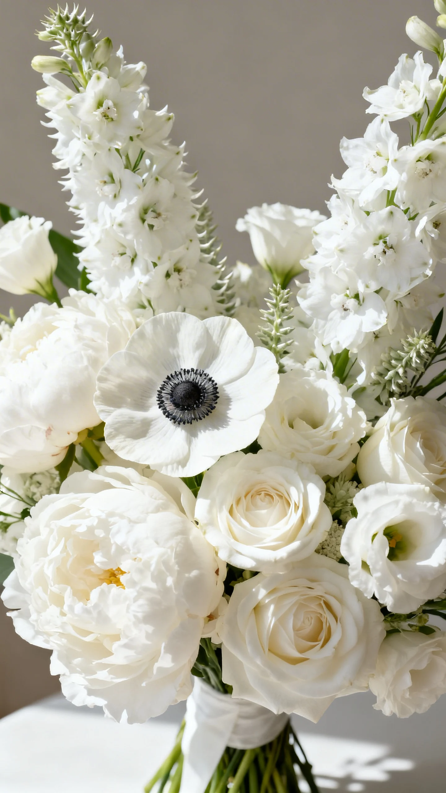 All-white bouquets with high-contrast texture