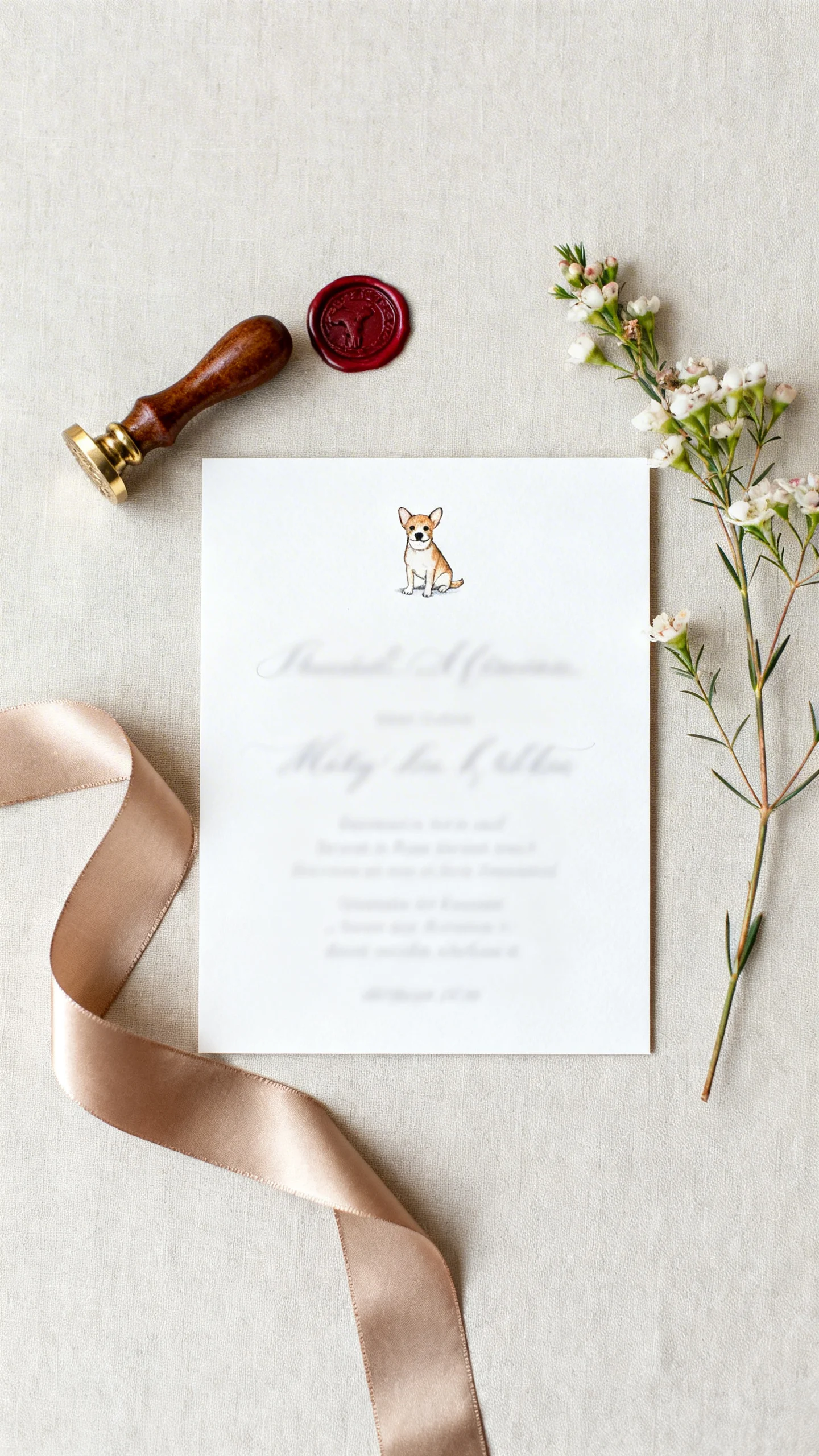 You can still include your pet in a meaningful way through custom illustrations on invitations, cocktail signage, or a cake topper. Plan a photo session with your pet in your wedding attire on a separate day for a relaxed, editorial feel. You’ll get the memories without worrying about venue rules.