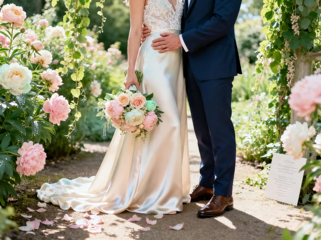 Lightweight, breathable textures photograph beautifully: silk or silk-blend ribbons, linen napkins, stonewashed cotton tablecloths, and matte chiffon for bridesmaids. Avoid overly shiny satin everywhere in direct sun; mix in matte and textured elements for balance. Comfort matters, and relaxed fabrics can still look very refined.