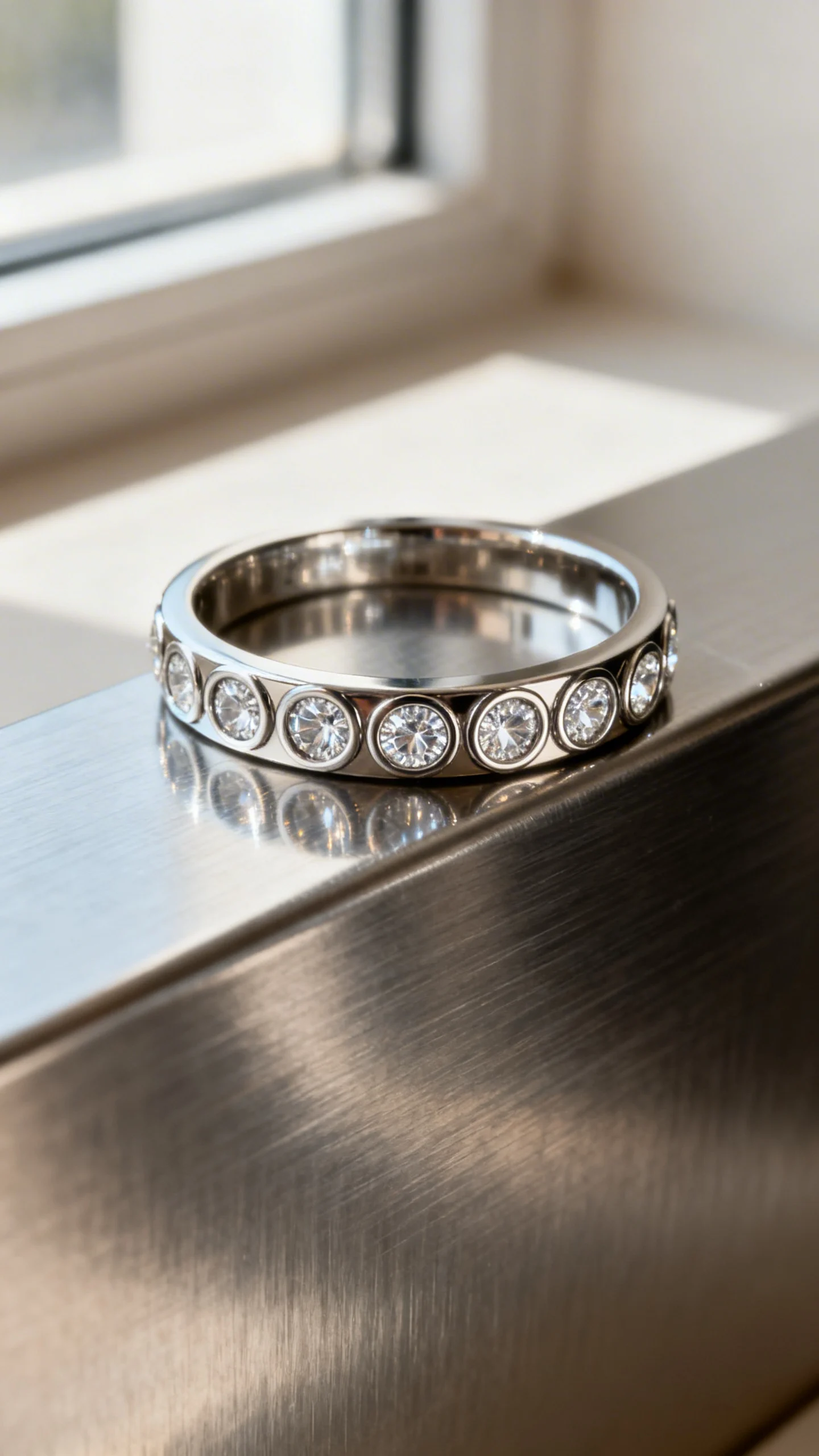 8. Bezel-Set Diamond Band for Modern, Understated Opulence