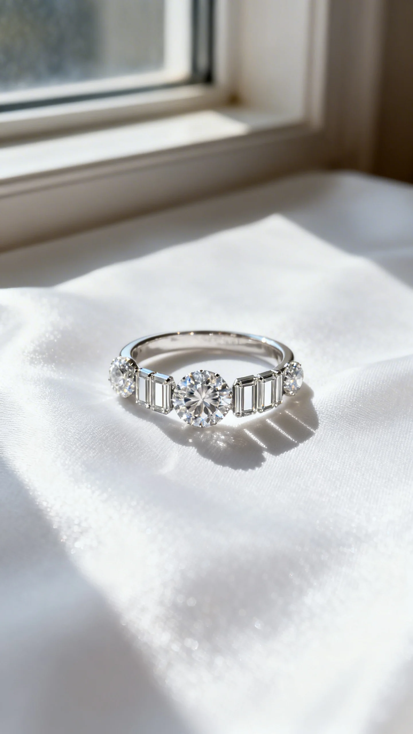 6. Alternating Round and Baguette Band (Classic “Rich” Balance)