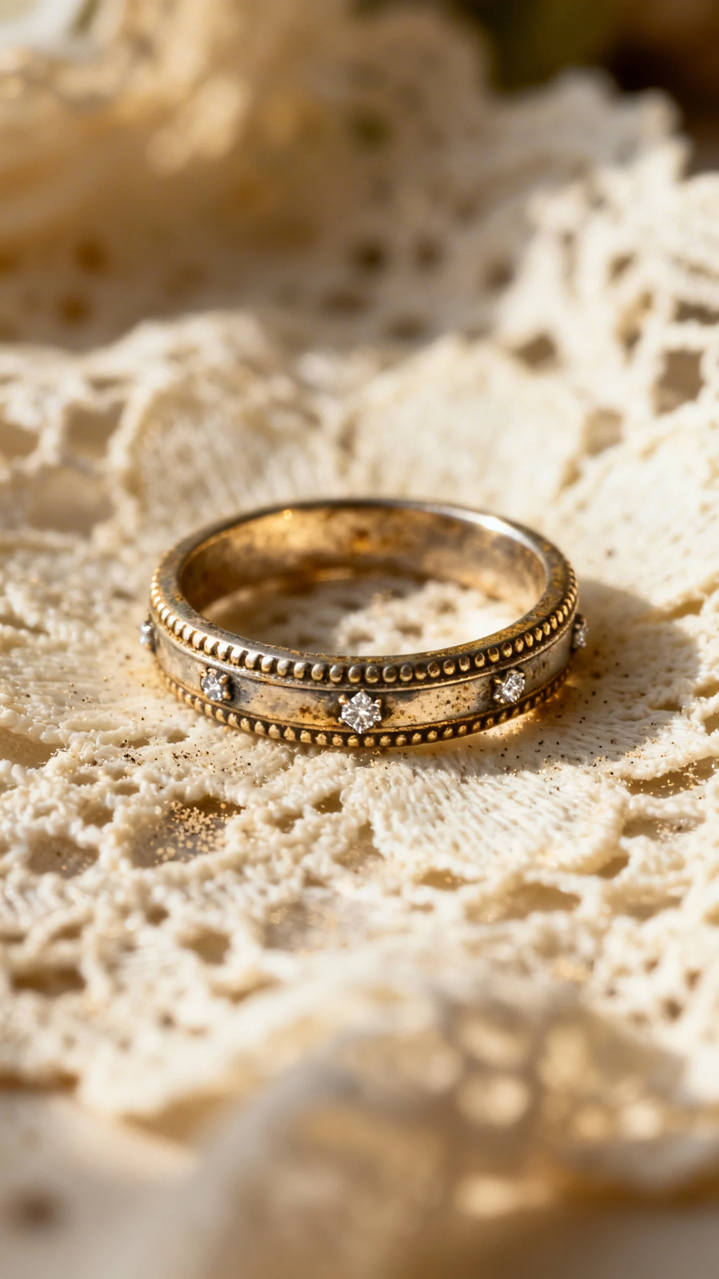 10. Diamond-Accented Vintage Milgrain Band for Heirloom Glam