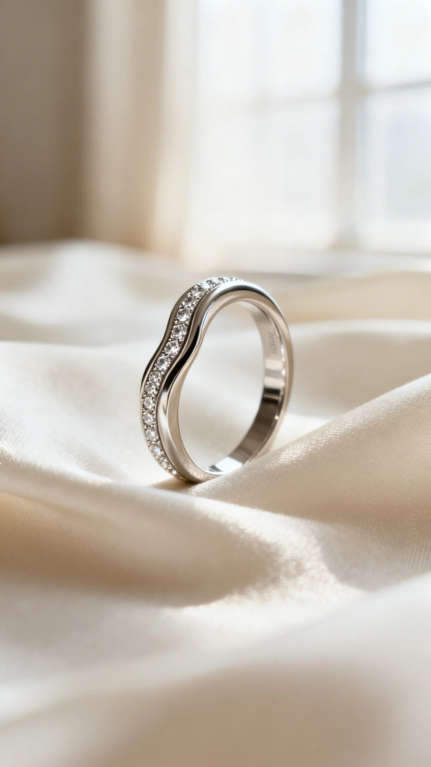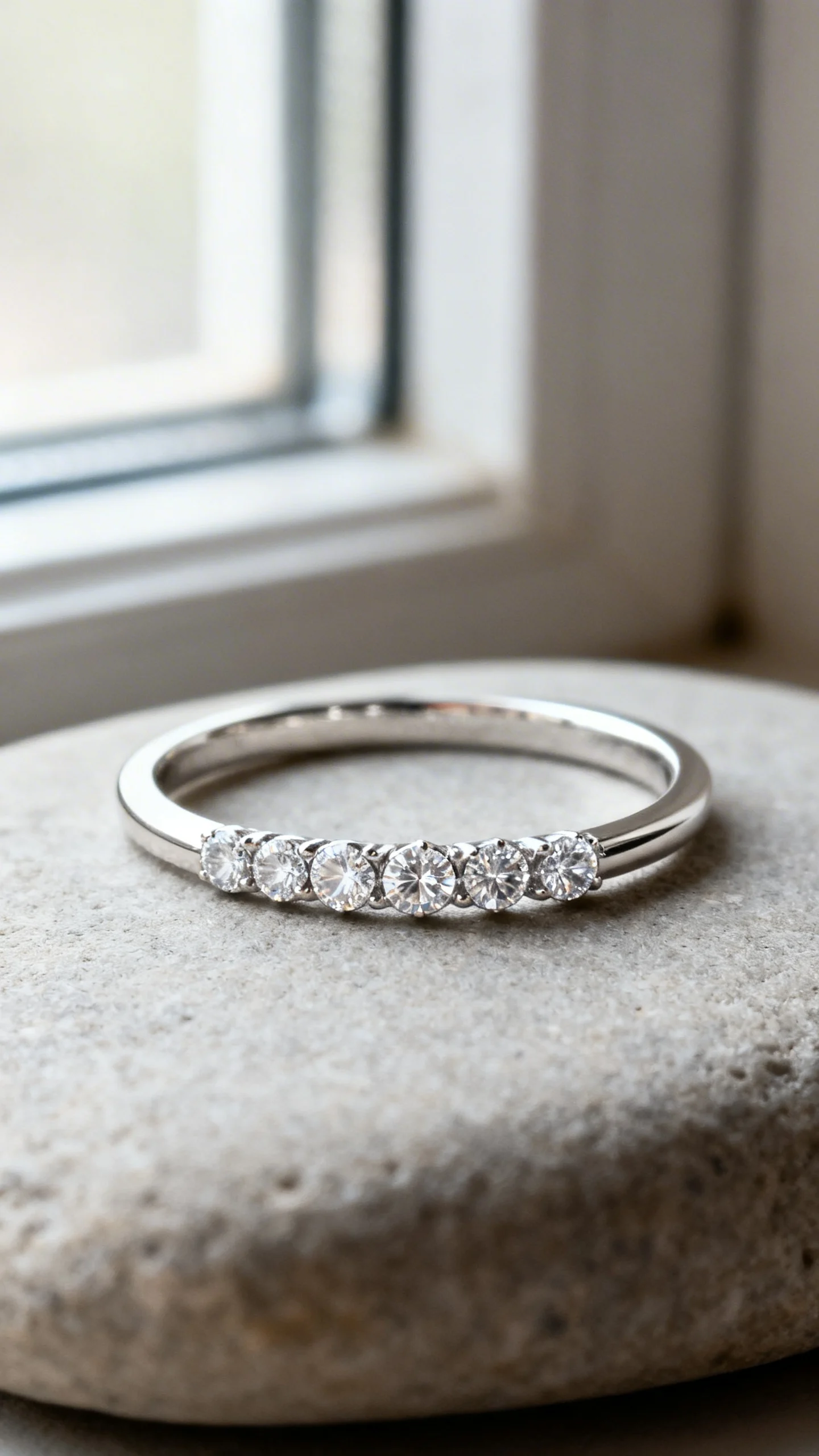 If you want “expensive” without constant glitter, a half eternity with larger diamonds gives a clean, intentional shine. The spacing makes each stone feel more significant, and it’s easier to resize later than a full eternity. It stacks beautifully with an engagement ring and leaves room for a future anniversary band. This style suits minimalist brides who still want obvious brilliance.