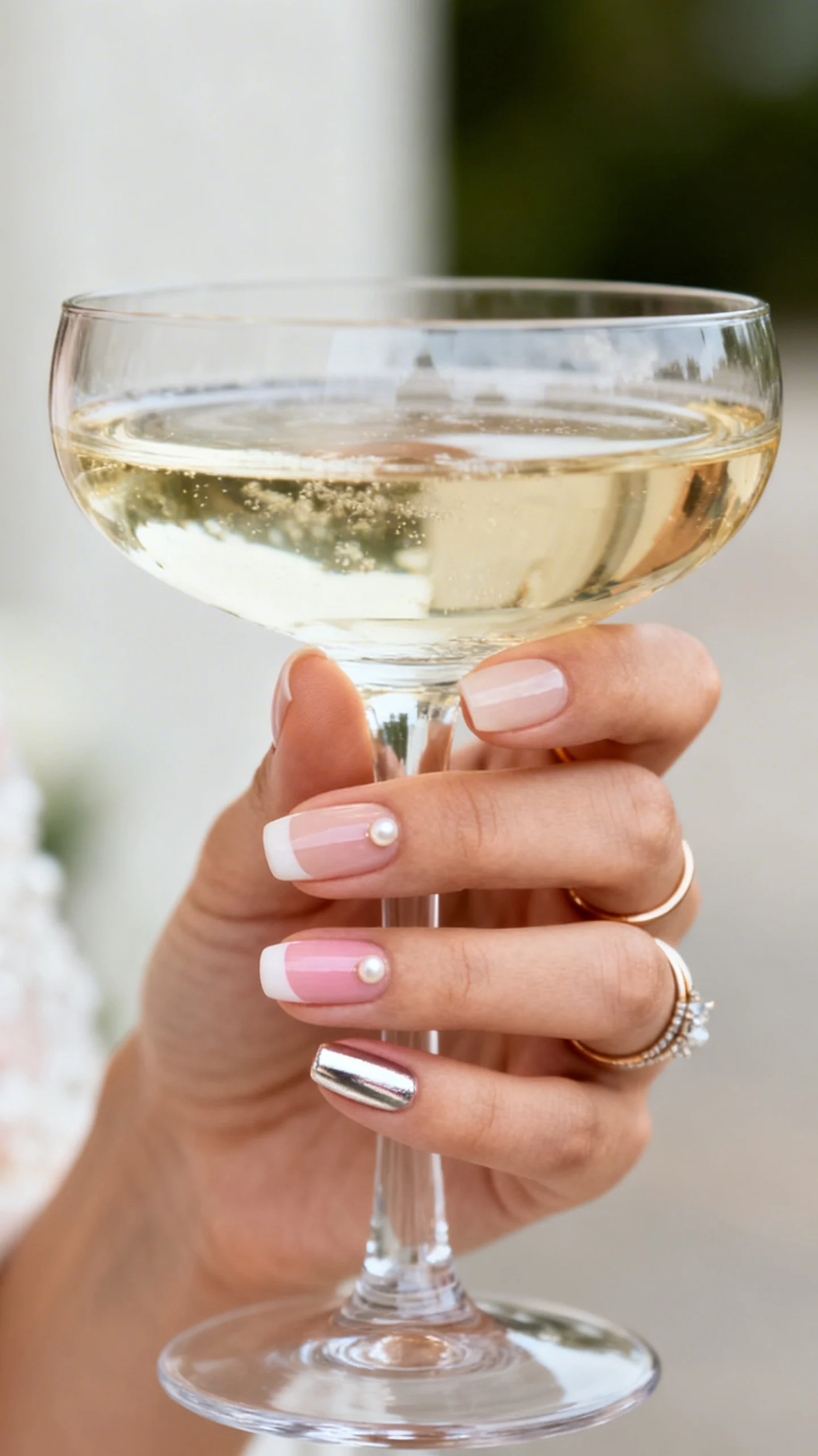 - If your dress is heavily embellished: Go simpler on nails (milky nude, micro French, blush ombré). Let beading and lace be the star.