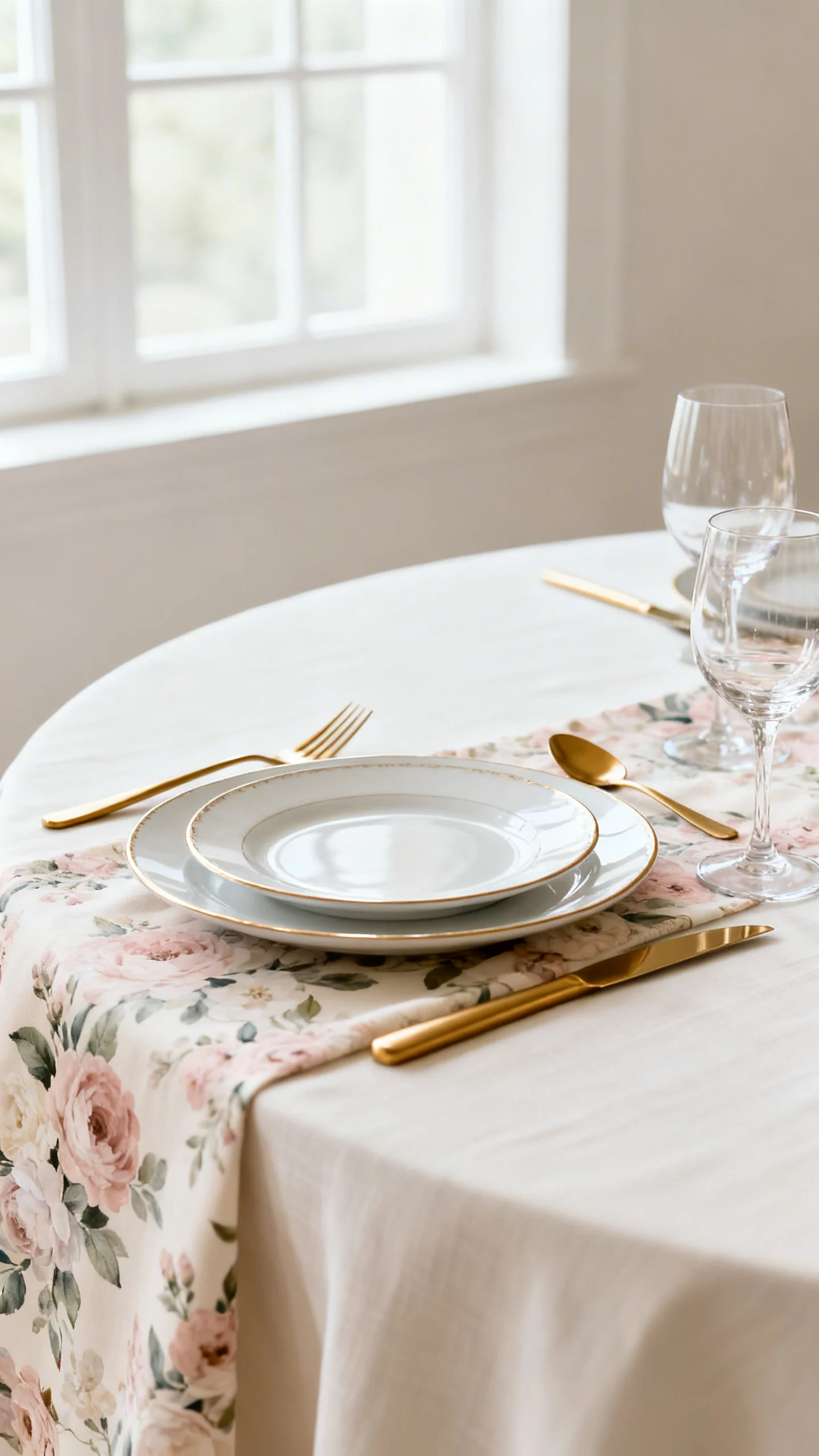 - Texture: velvet ribbon on napkins, or a delicate napkin fold with a sprig