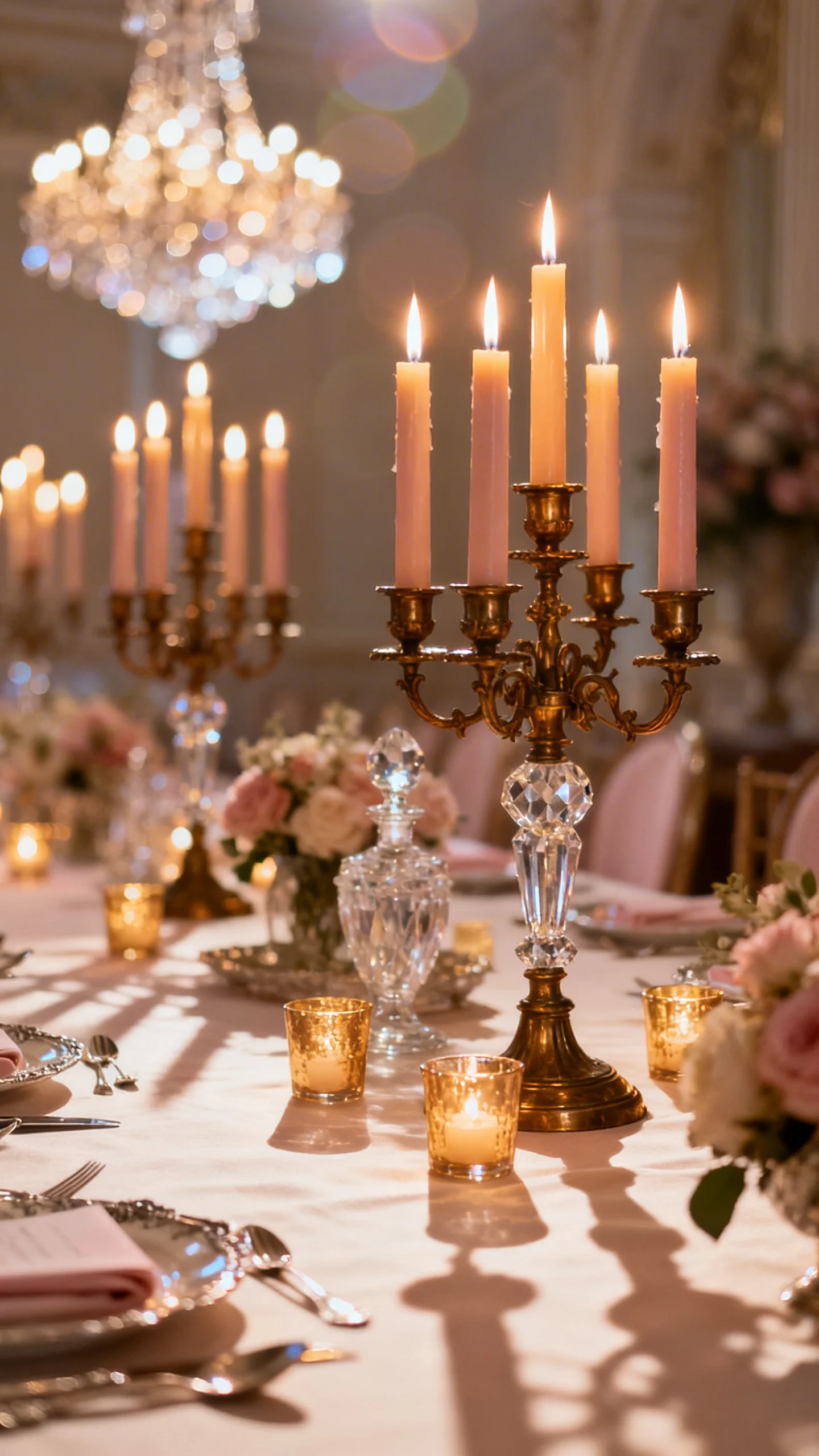 If you do only one Bridgerton-inspired upgrade, make it lighting. Candlelight and warm illumination instantly transform an ordinary space into something intimate and cinematic.