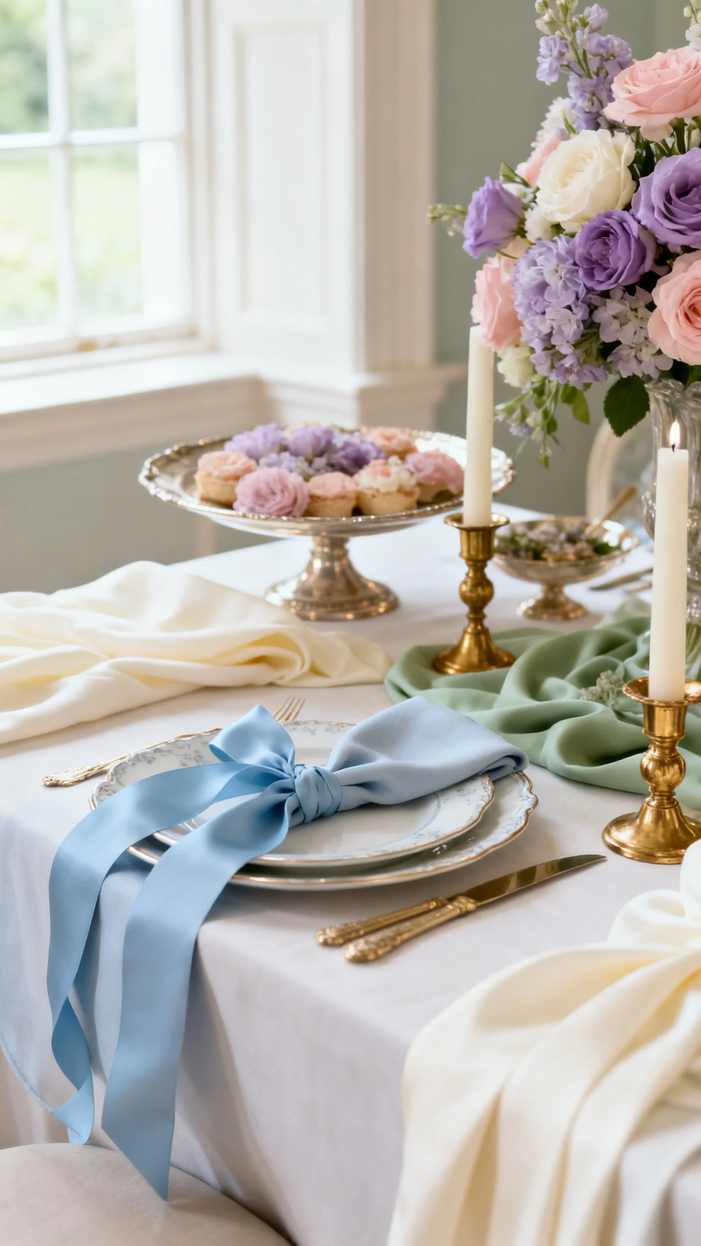 Practical tip: pick one “hero” color (like powder blue) and keep it strongest in florals and linens, then let the rest support it. If you try to use every pastel equally, your tables can start to look like an Easter display instead of elevated romance.