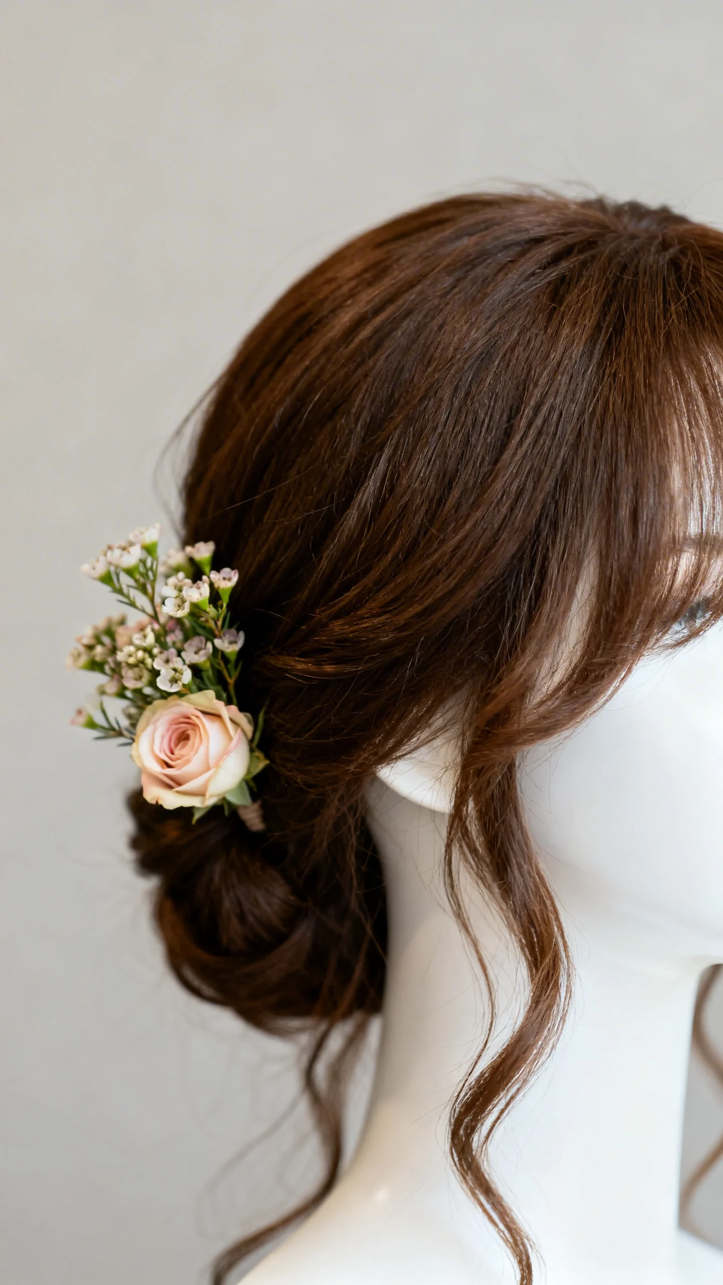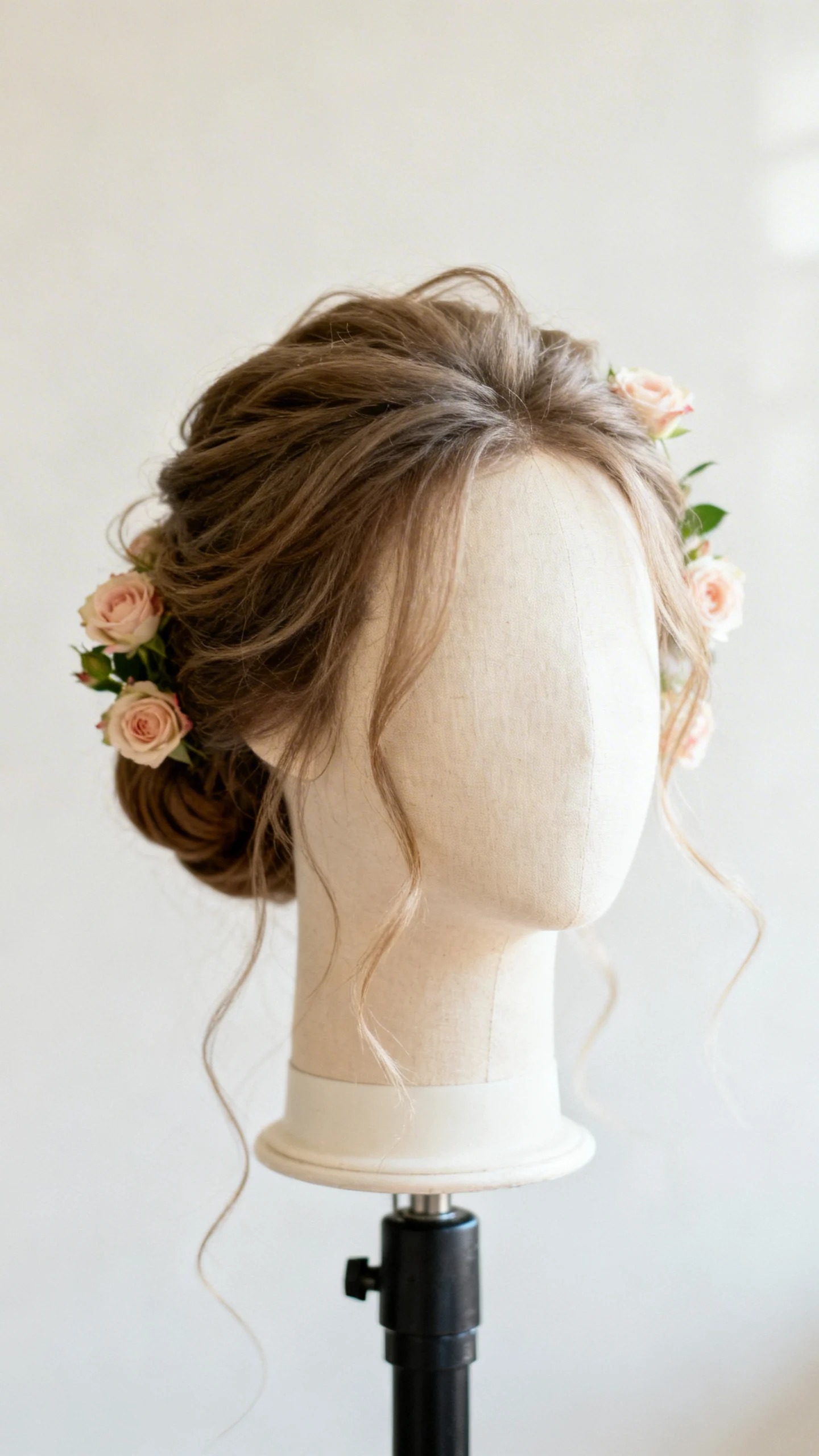 Use flowers that hold up well (spray roses, wax flower, orchids) and keep them cool until styling begins. Ask your florist to provide hydrated blooms and avoid placing delicate petals near hot tools or heavy hairspray. If possible, keep a few spare stems with your coordinator for quick touch-ups.