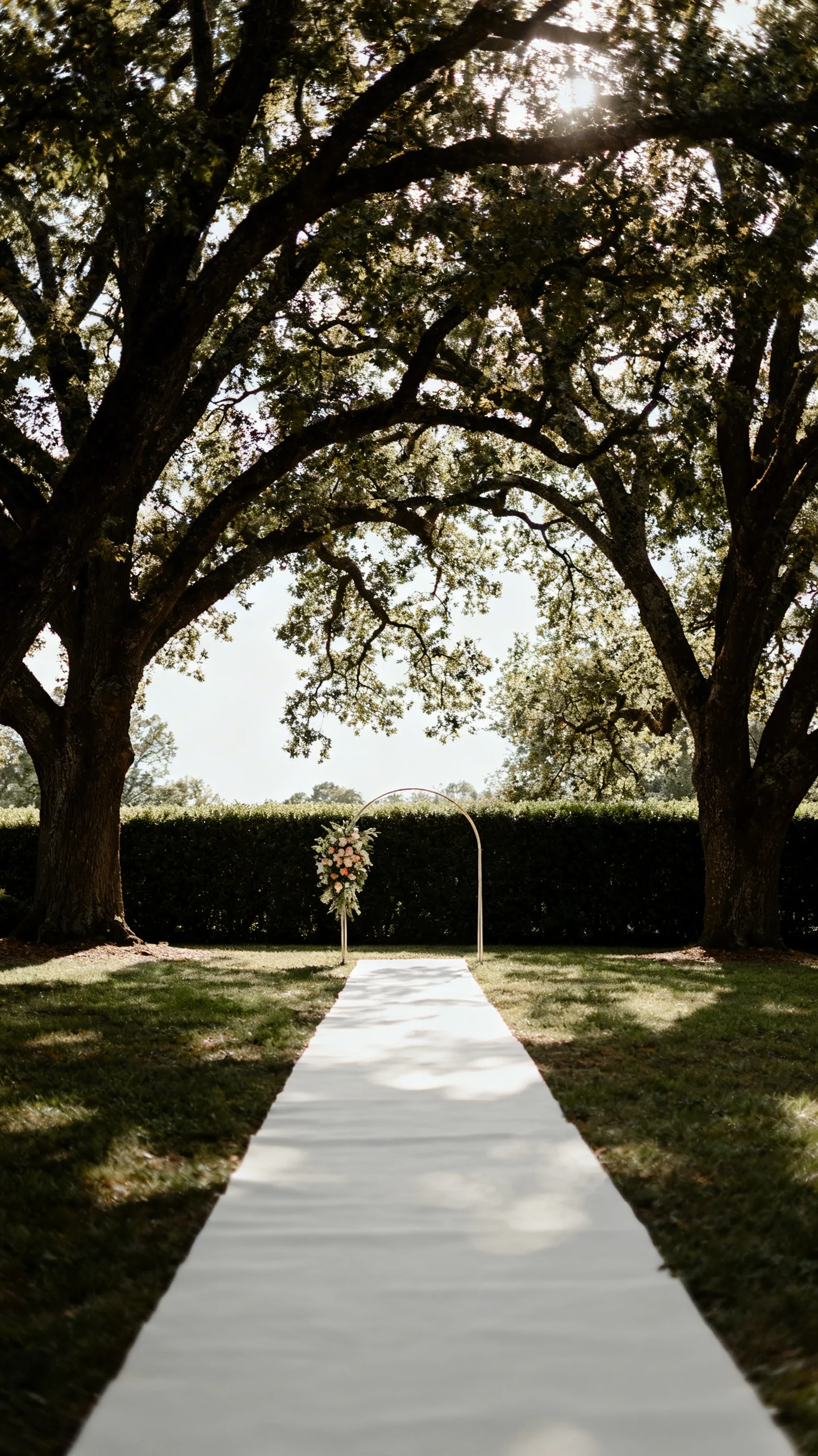 If your venue has stunning trees, a hedge, or a garden gate, let nature be the backdrop and style it lightly. A simple floral arrangement at the aisle entrance or a small arch accent can be enough. Photographers love natural framing because it makes images feel layered and timeless. Aim for even lighting by choosing a spot with soft shade or golden-hour light.