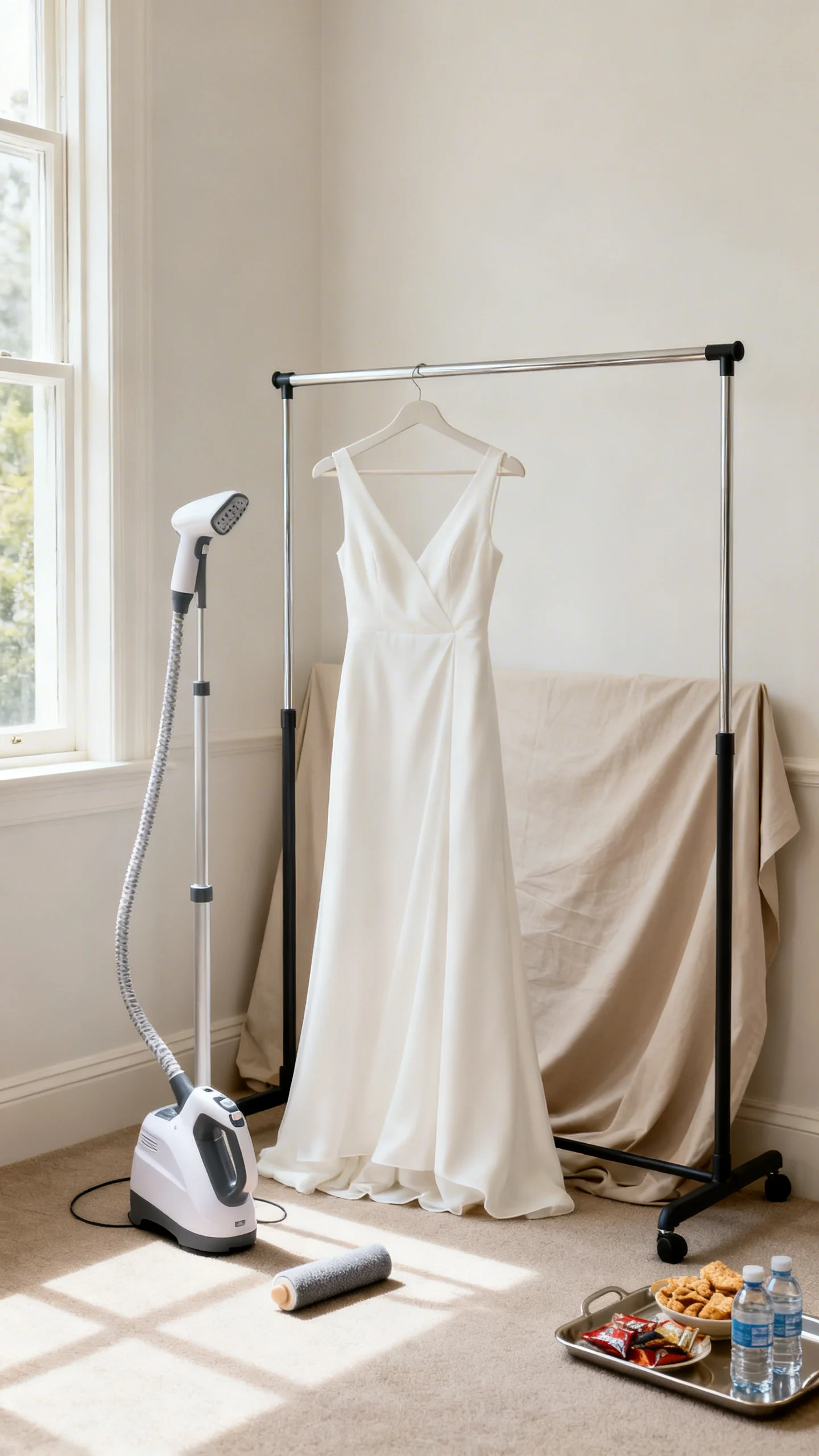 Designate one corner (or one room) as photo-ready: clear clutter, hang a neutral sheet if needed, and keep bags out of sight. Bring matching hangers, a small steamer, and a lint roller so outfits stay crisp. Put snacks and water in a separate spot to keep the pretty area clean. This tiny setup makes morning photos feel editorial and keeps everyone calmer.