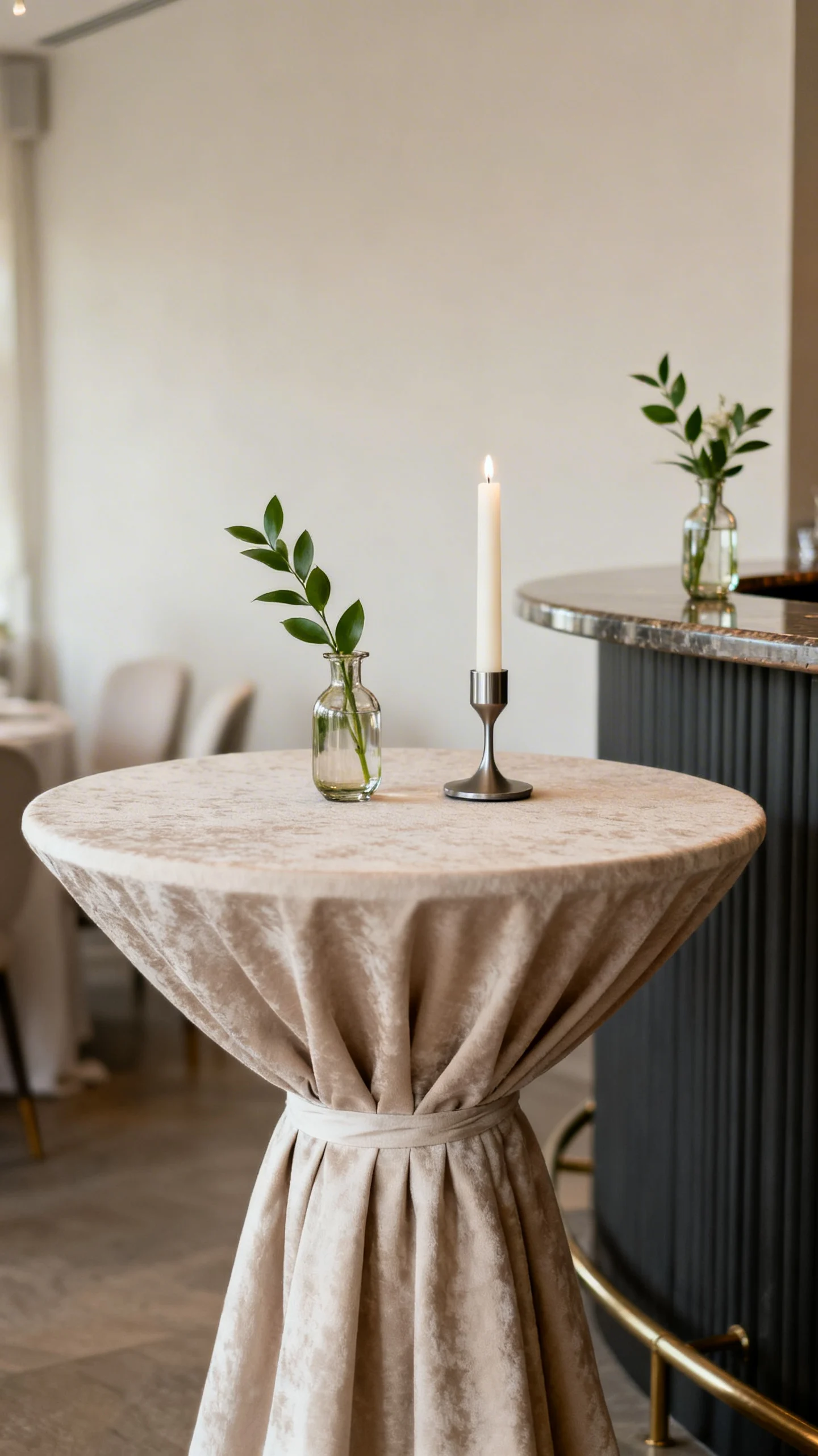 Pick one signature element and repeat it across moments: the same bud vase style on cocktail tables and the bar, or the same linen color used for welcome table and dessert. This reduces shopping and keeps the aesthetic consistent without extra effort. Use a simple formula like “one vessel + one greenery + one candle” for any small surface. It looks elevated, photographs beautifully, and is easy to delegate.