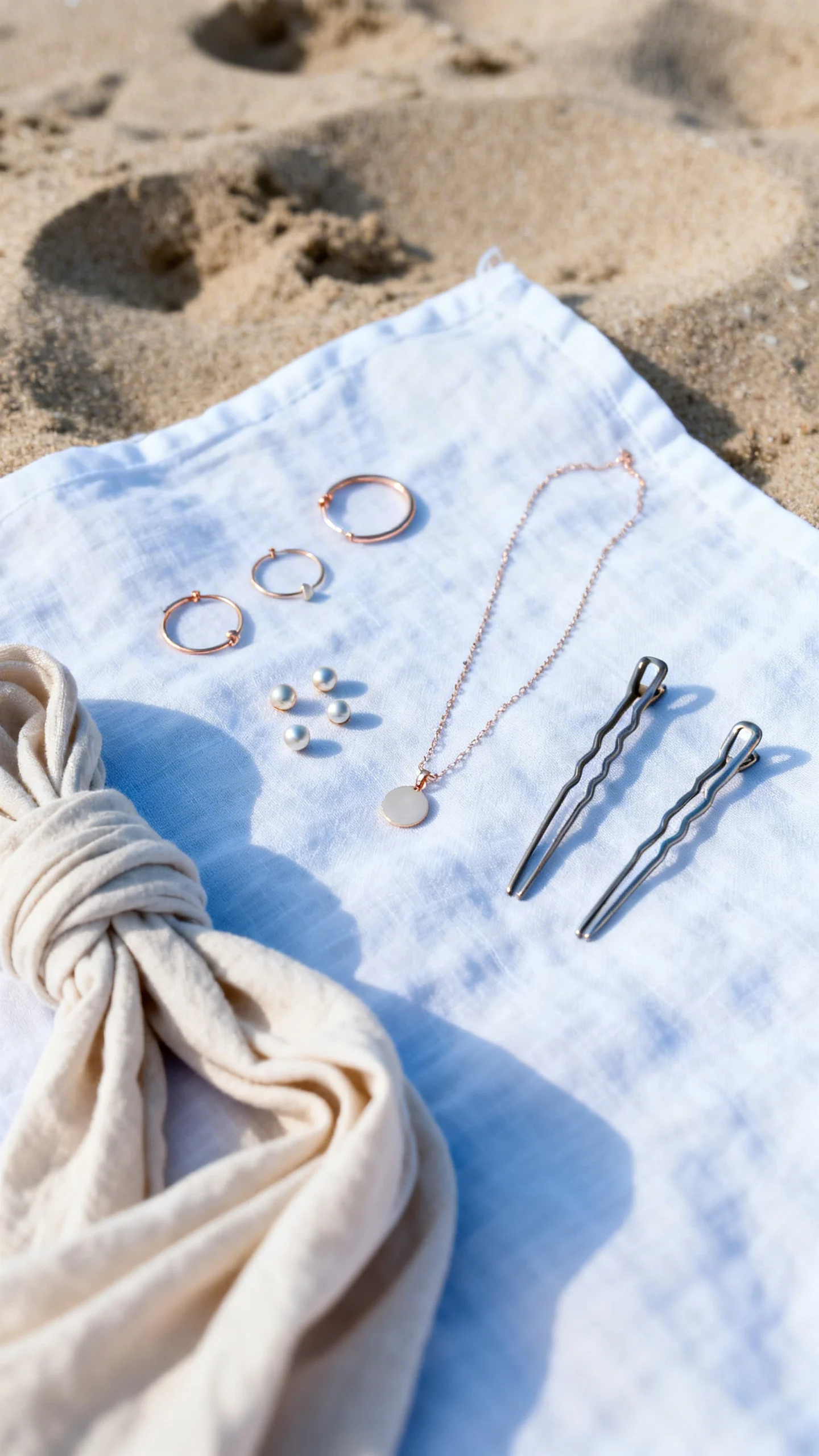 Keep accessories streamlined so they don’t tangle or snag—studs, small hoops, and short necklaces work well. For hair, consider low buns, sleek ponytails, or half-up styles with pins that can handle gusts. If you’re wearing a veil, a shorter length or a weighted edge helps it behave on the shoreline. A wrap or scarf can look gorgeous, but choose one with enough weight to stay on your shoulders.