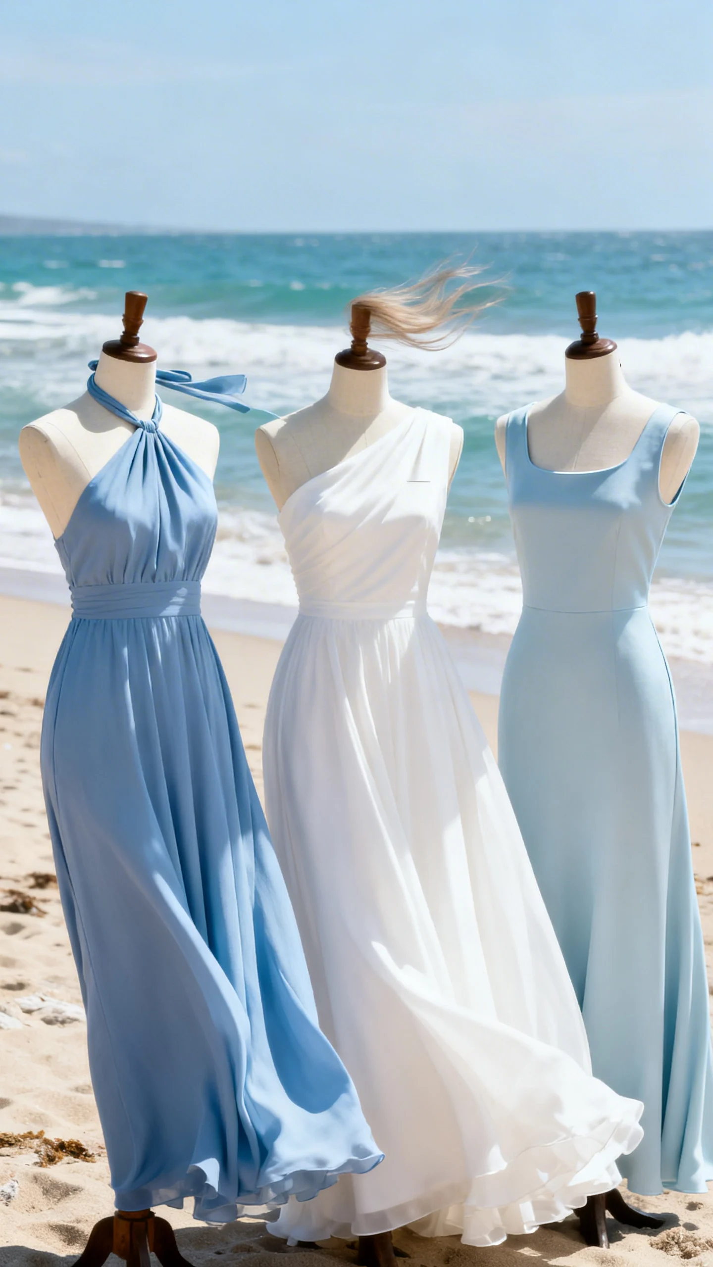 What bridesmaid dress styles look cohesive for a beach wedding aesthetic?