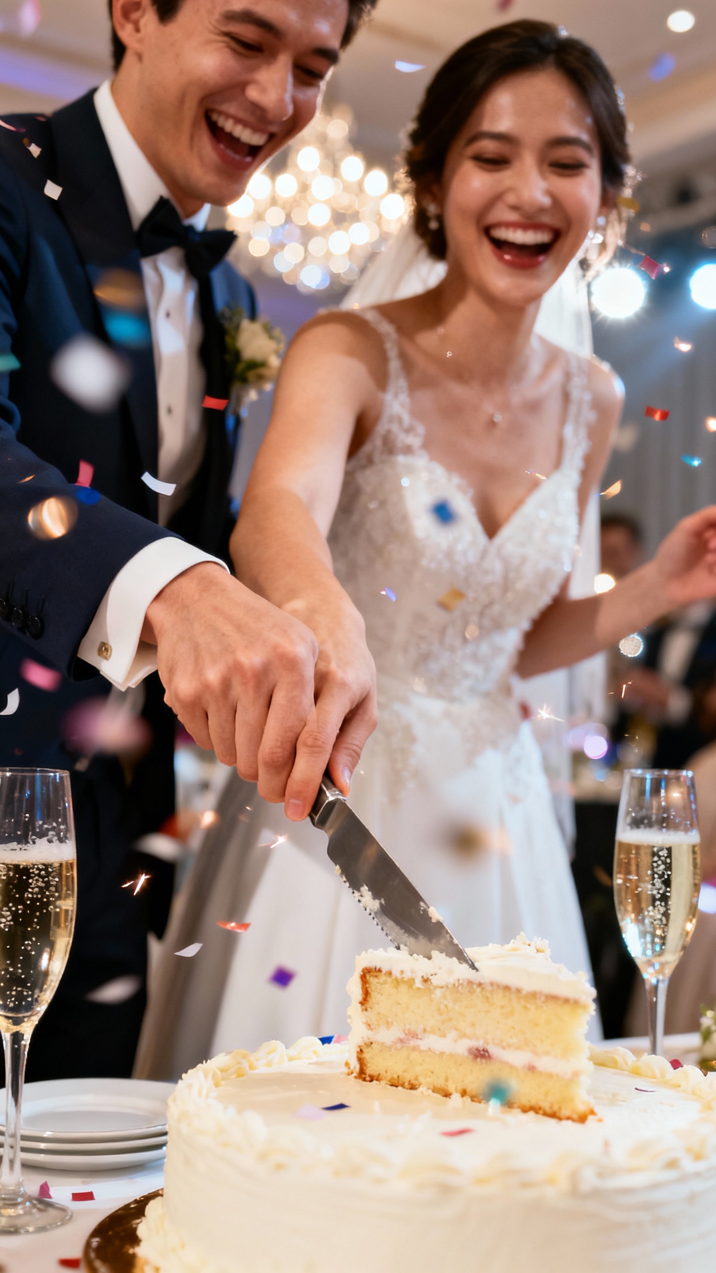 Aim for 60–90 seconds of a song (usually one verse + chorus). That’s enough time for the “cut,” the photo pause, and feeding each other a bite without the moment dragging.