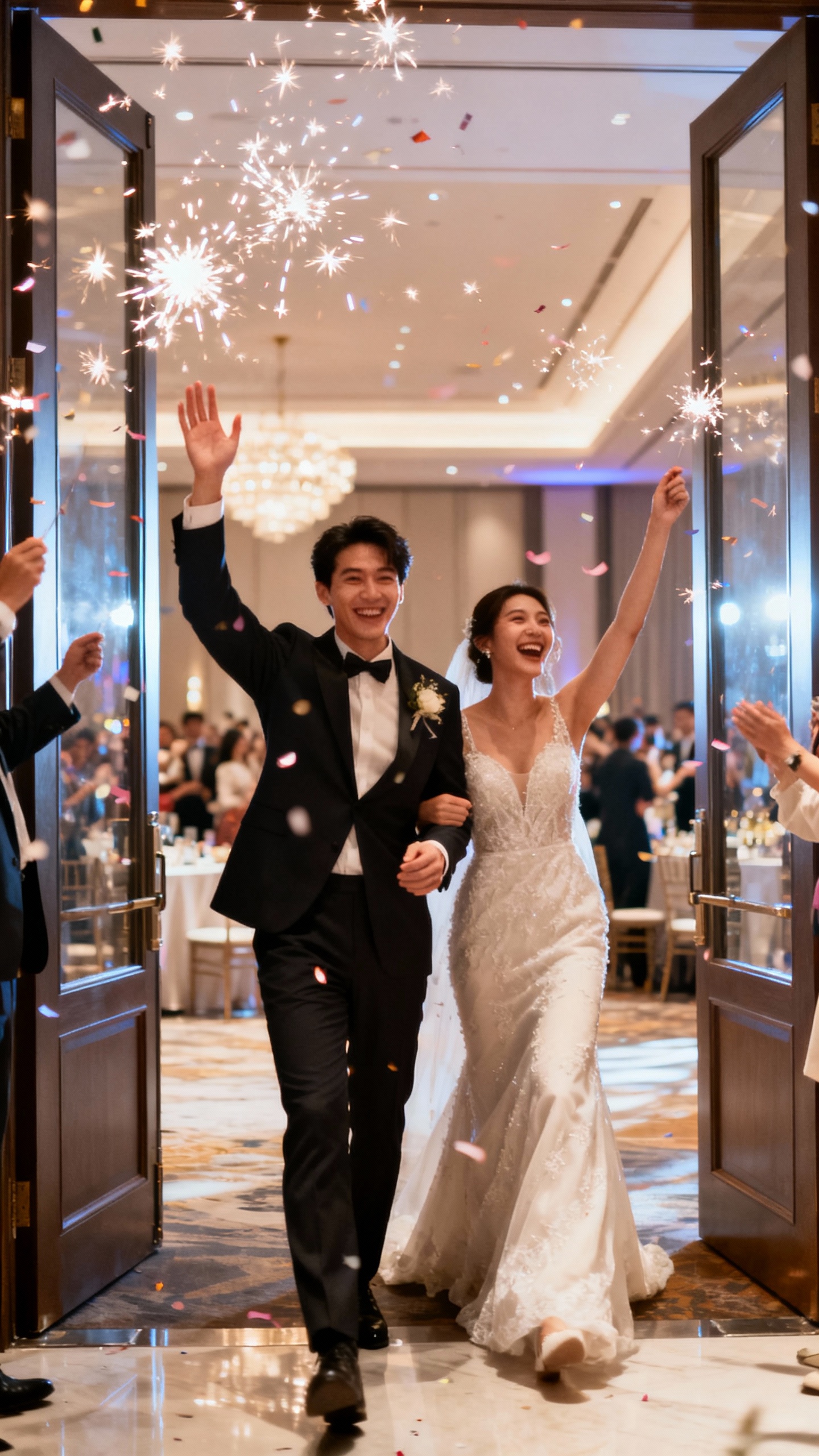 Most couples do it right as they enter the reception, before first dance/toasts, because it kicks off the night with energy. If you’re doing a more relaxed timeline (especially with a long cocktail hour), a post-dinner entrance can also feel dramatic and fresh—just make sure your coordinator cues guests to pay attention.