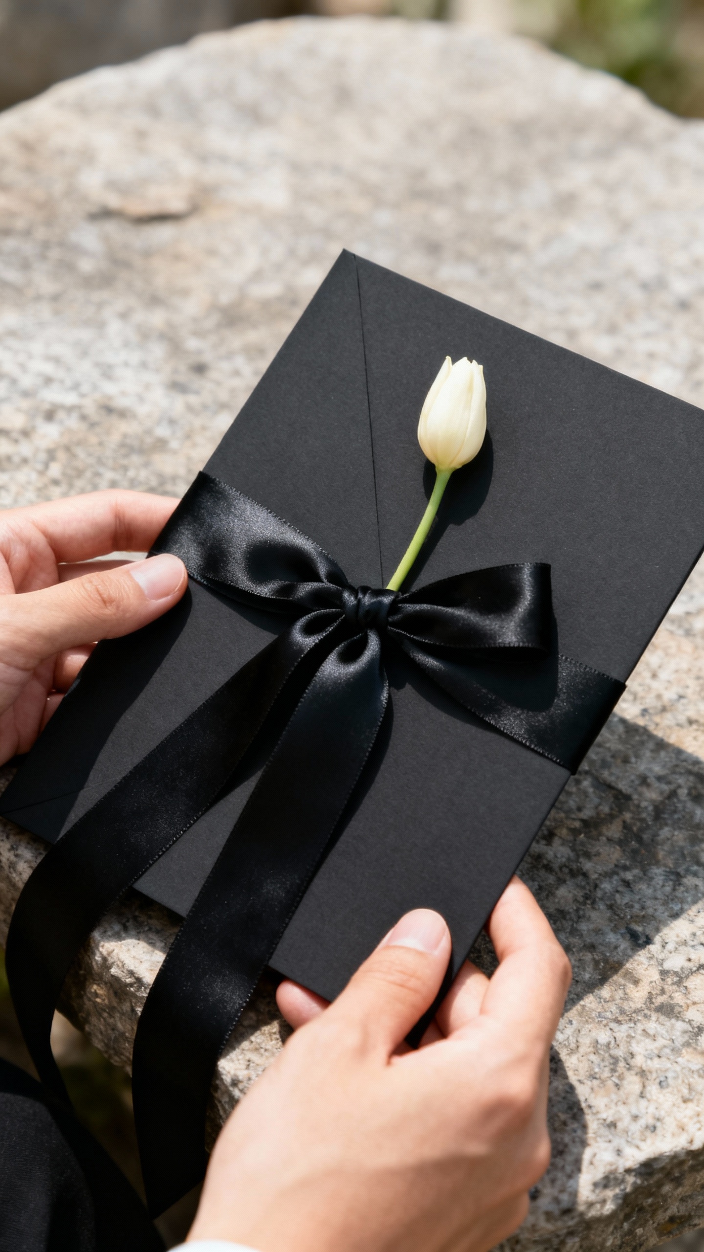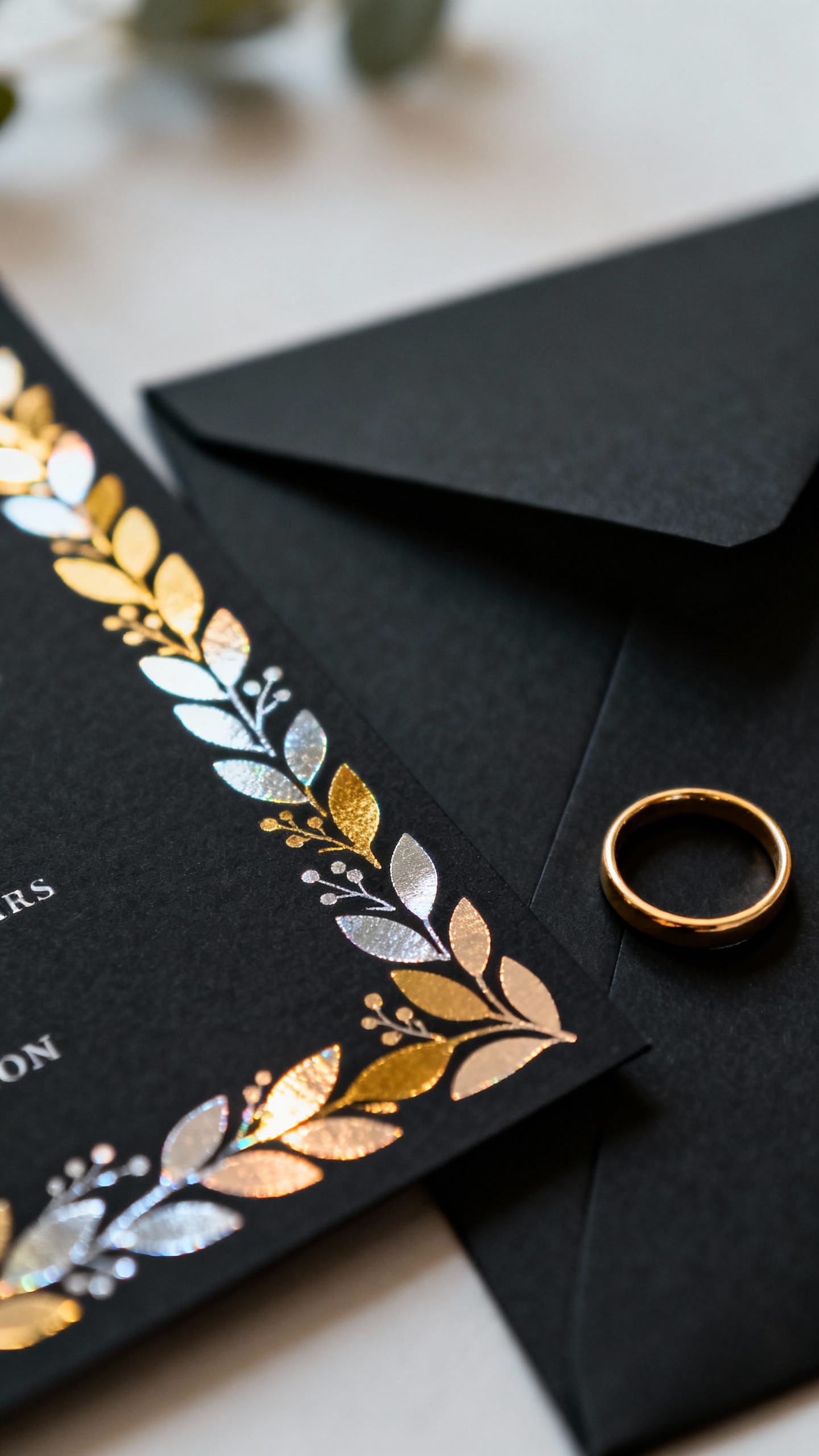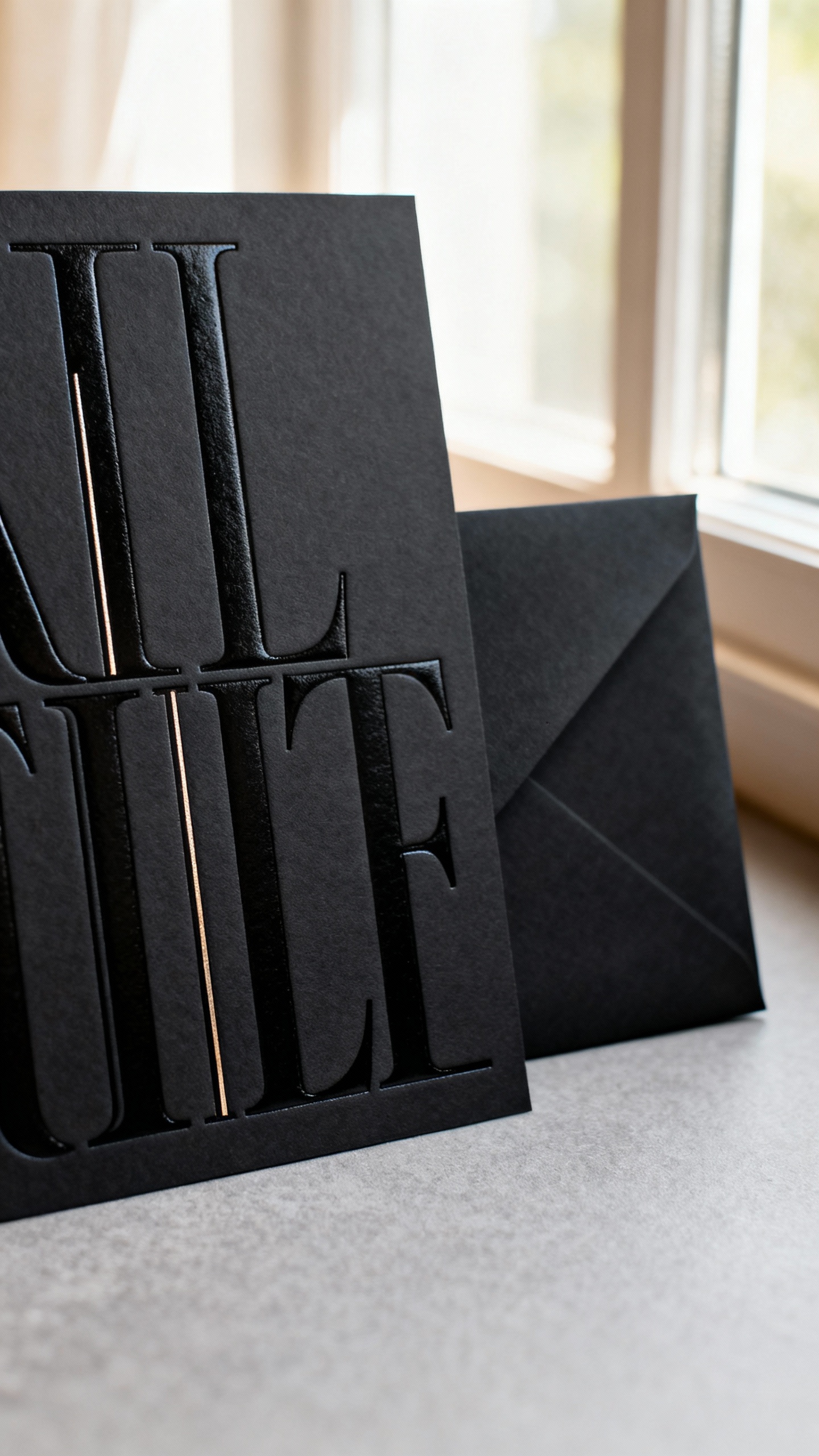 Yes—just style them to match the vibe. For daytime, lean matte (soft-touch), use more whitespace, and consider pairing black with lighter accents like ivory envelopes or a delicate floral liner. For evening weddings, you can go heavier on foil, seals, and dramatic typography.