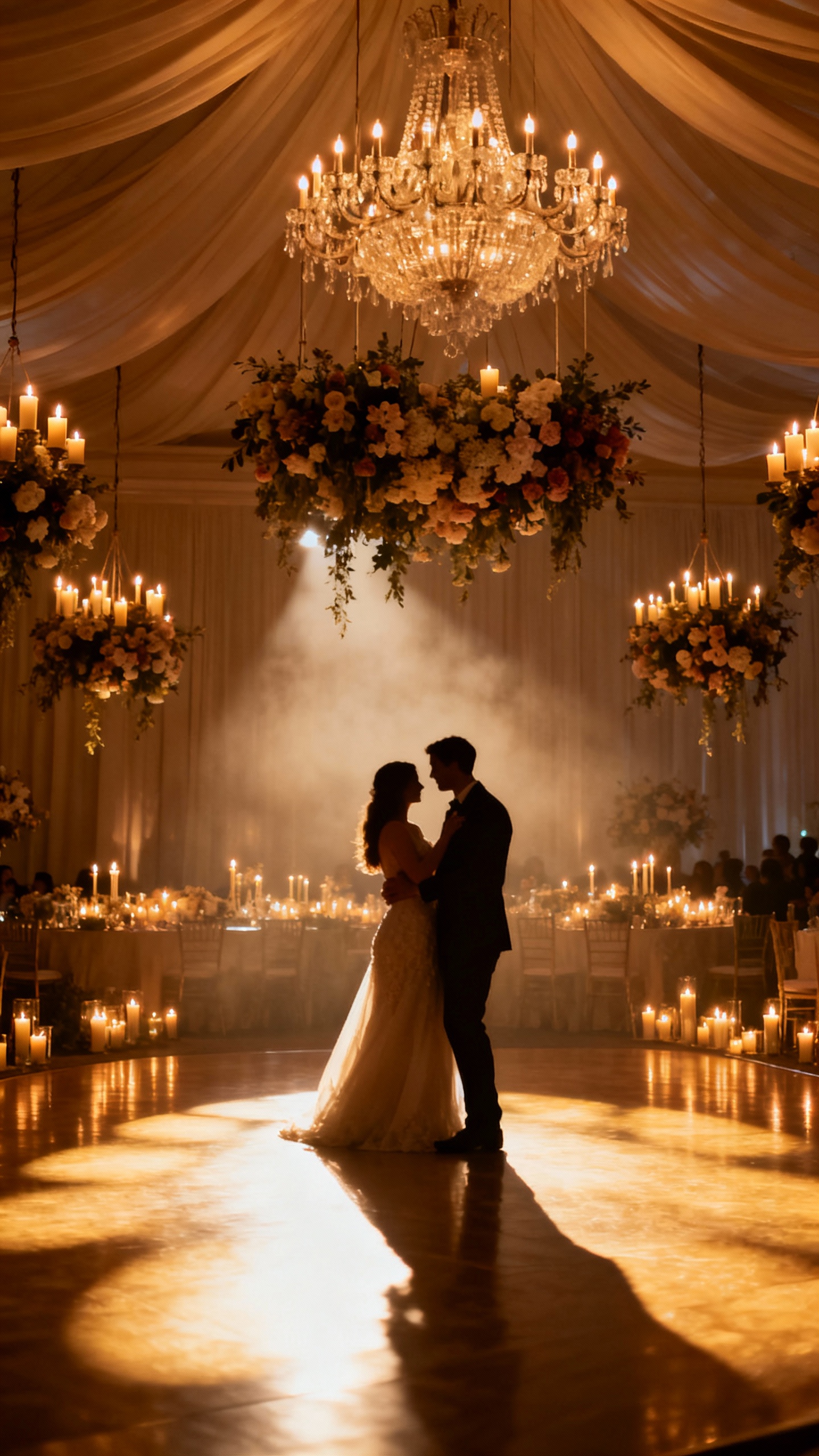 5) “Heavenly” Lighting: Chandeliers, Candlelight, and Soft Draping