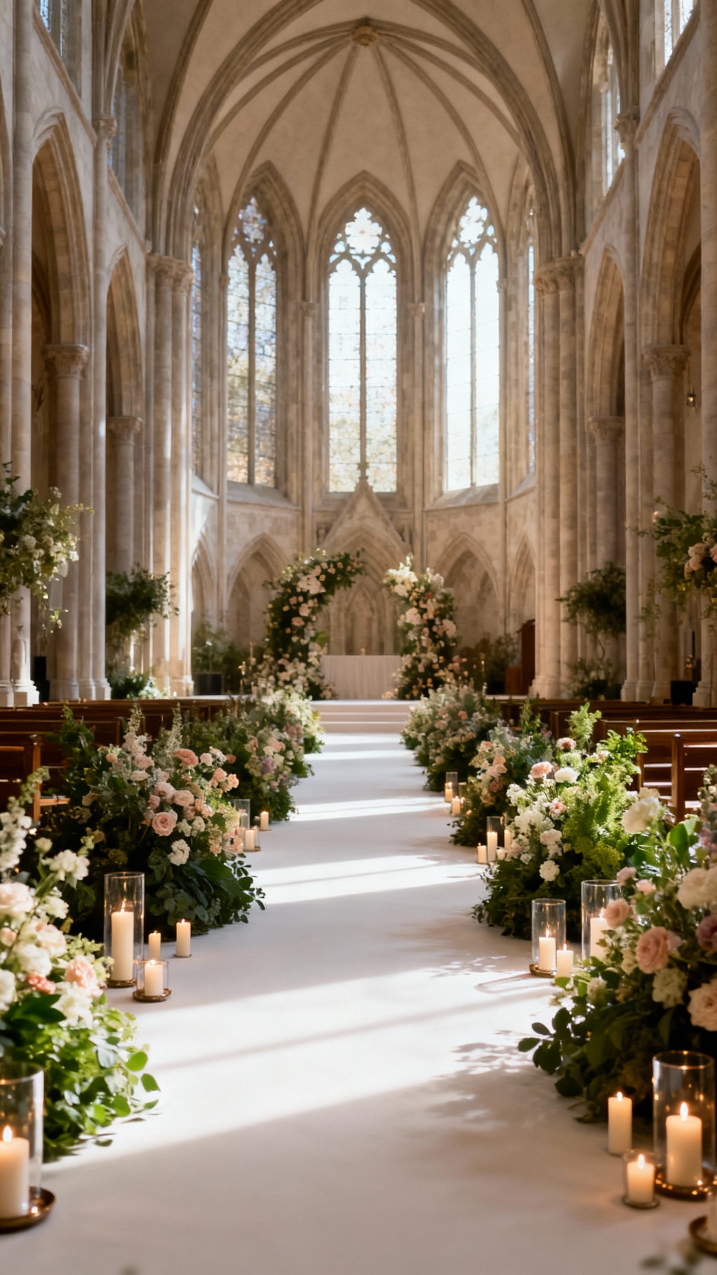 If you want extravagant without feeling flashy, invest in the aisle—because it’s where the most emotional photos happen. Line the aisle with grounded arrangements, clusters of pillar candles (real or LED), and soft fabric runners to create that “walking into a sanctuary” vibe. For a practical win, repurpose those aisle pieces at the reception entrance or around the sweetheart table.