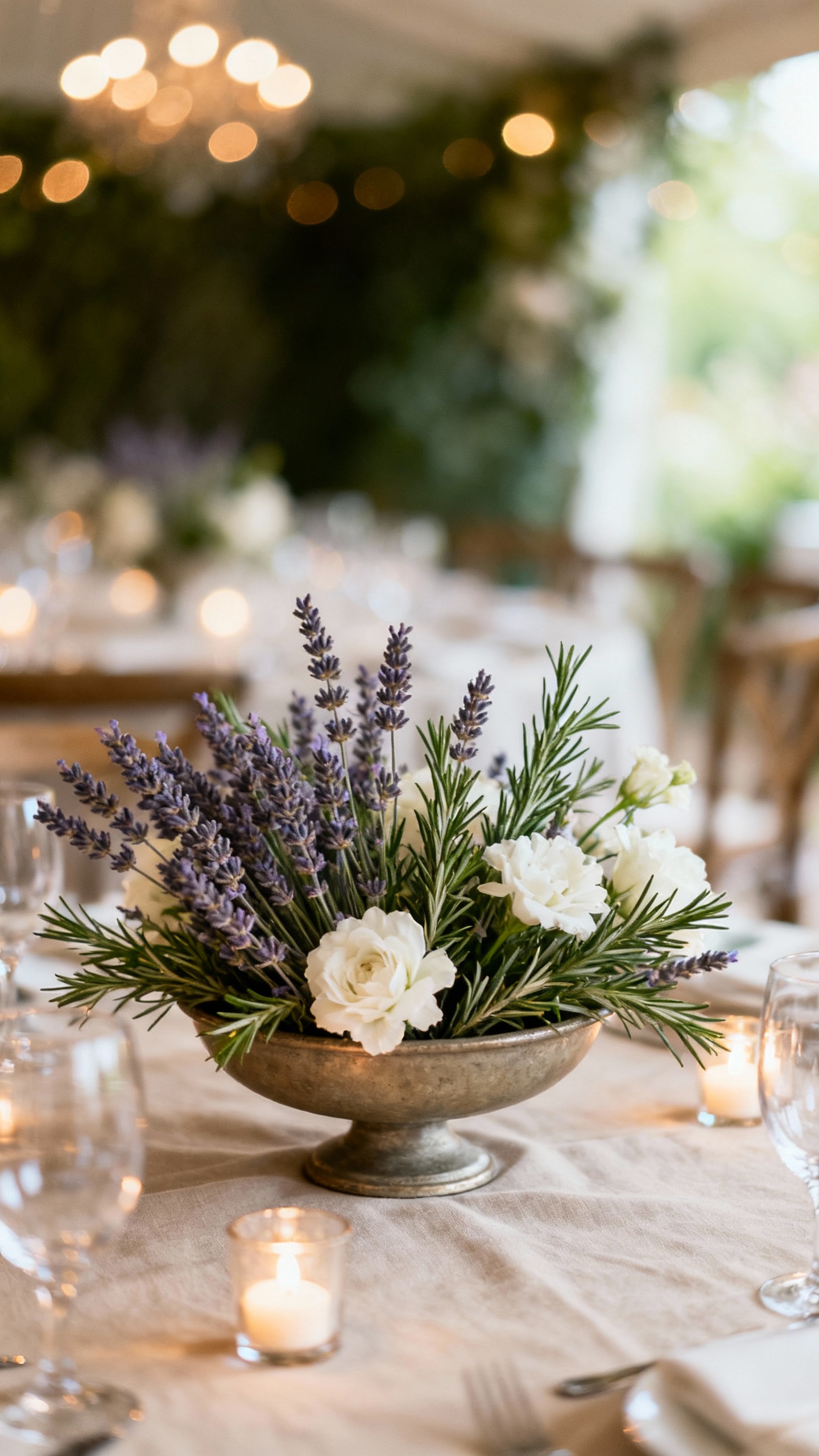 5) Lavender + Rosemary Table Centerpieces (Peace + Remembrance)
