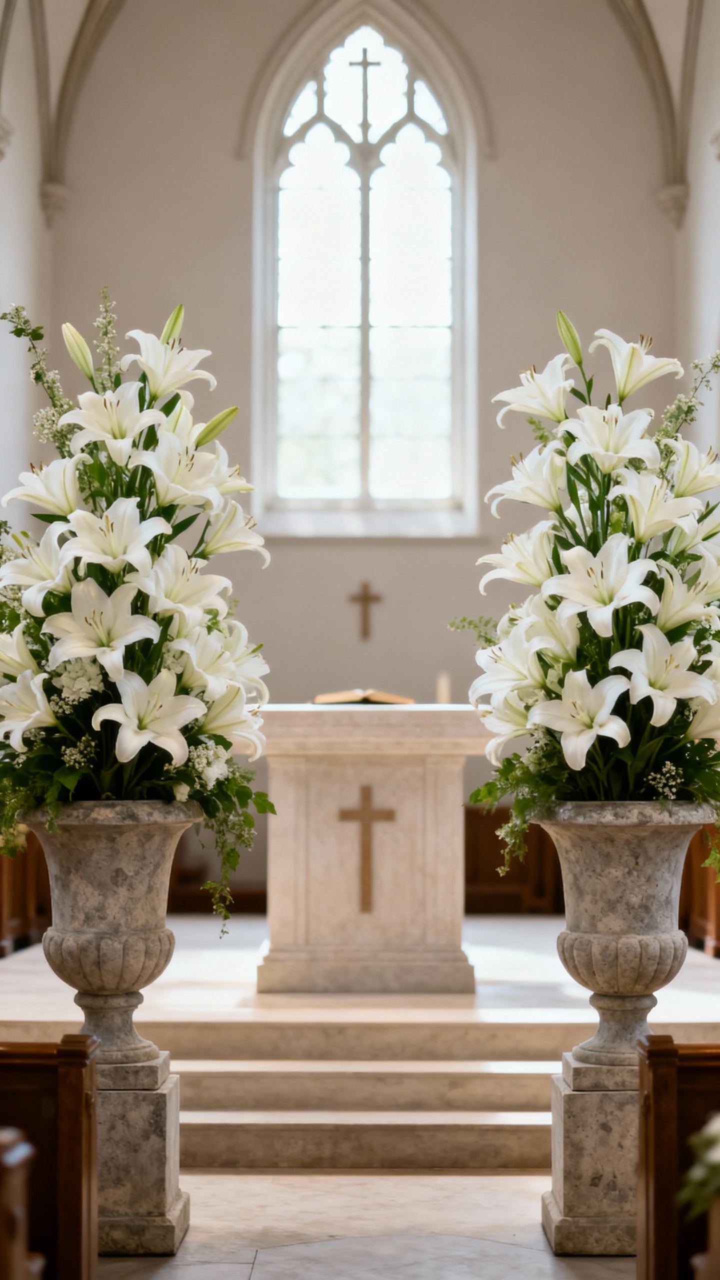 1) White Lily Altar Arrangements (Purity + Resurrection)