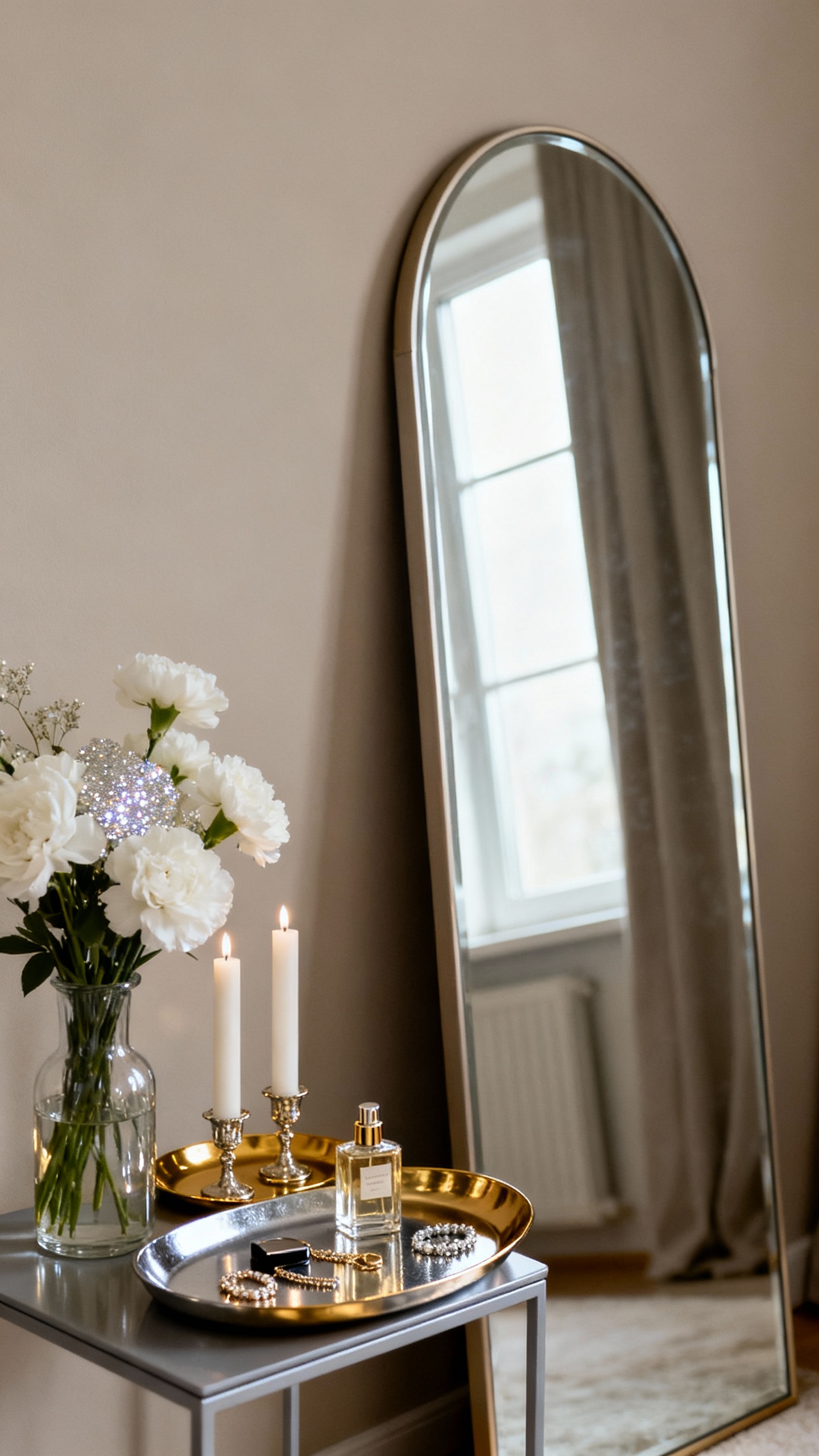 1) Mirror + Metallic Getting-Ready Station