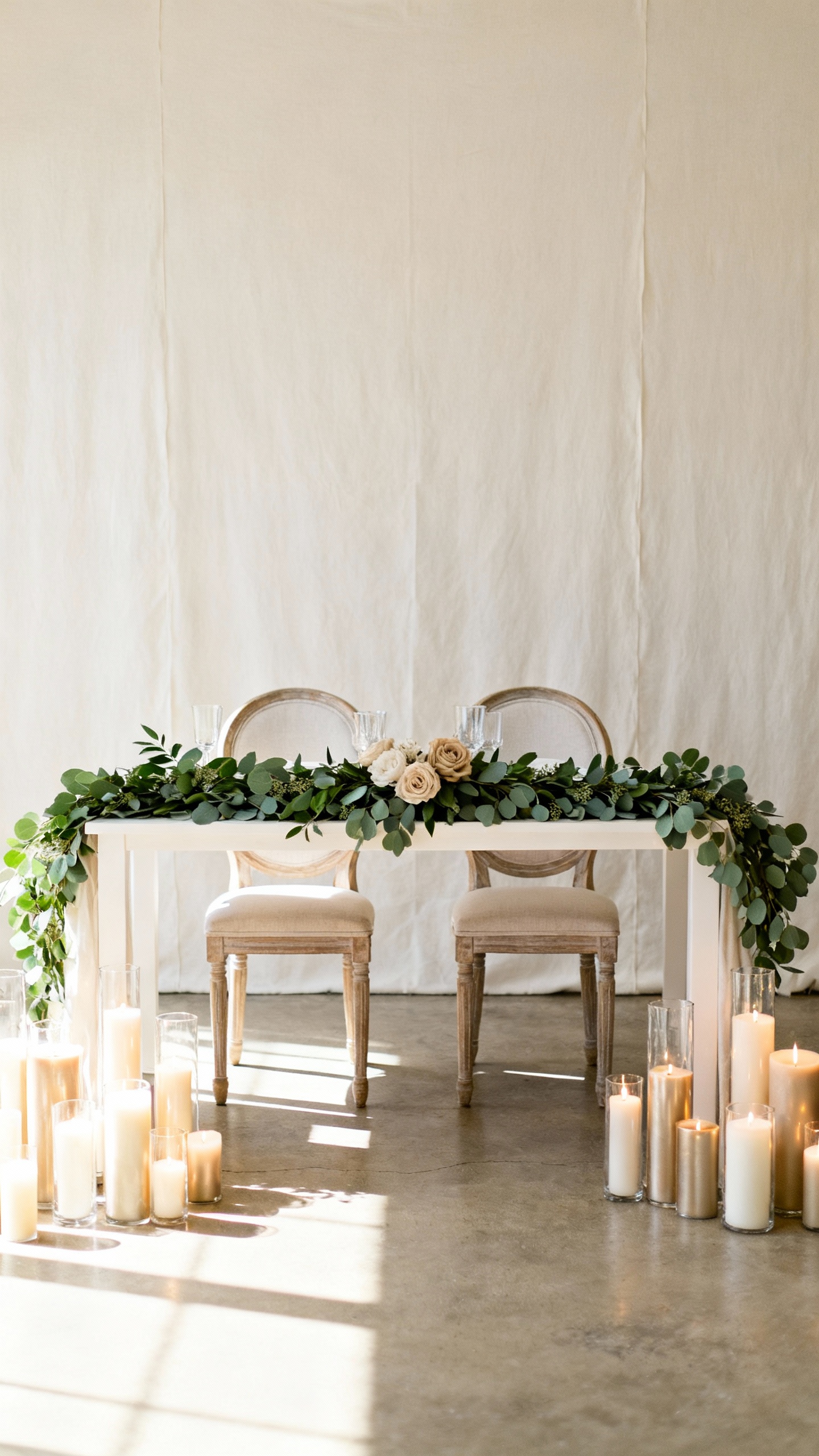 Instead of trying to decorate everything, choose 2–3 statement moments: ceremony backdrop, sweetheart table, and one focal photo spot. Use candles, greenery, and a tight color palette to make it feel cohesive and polished. If you’re doing florals, prioritize personal flowers (bouquet + boutonniere) and repurpose ceremony arrangements at the reception.