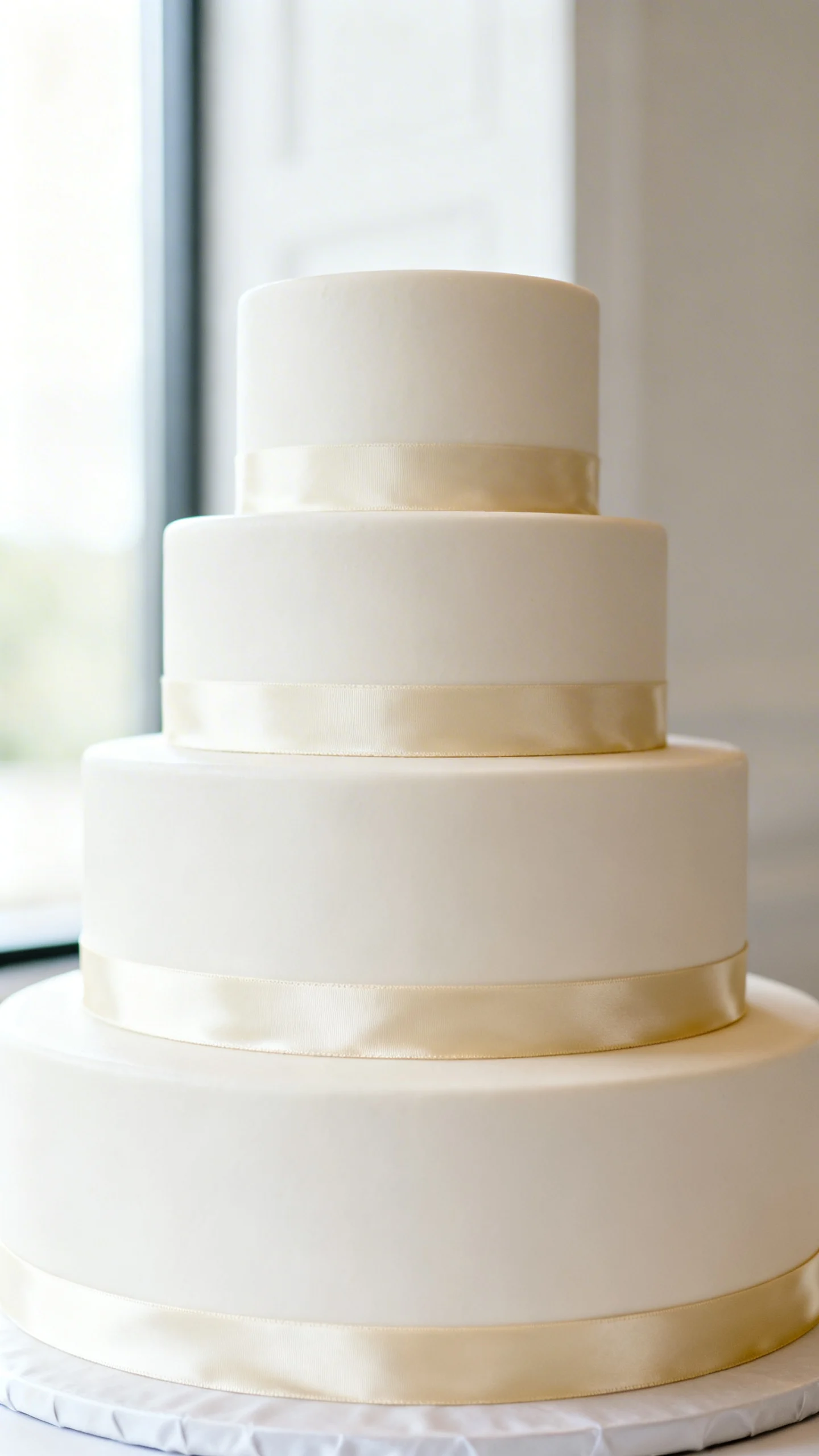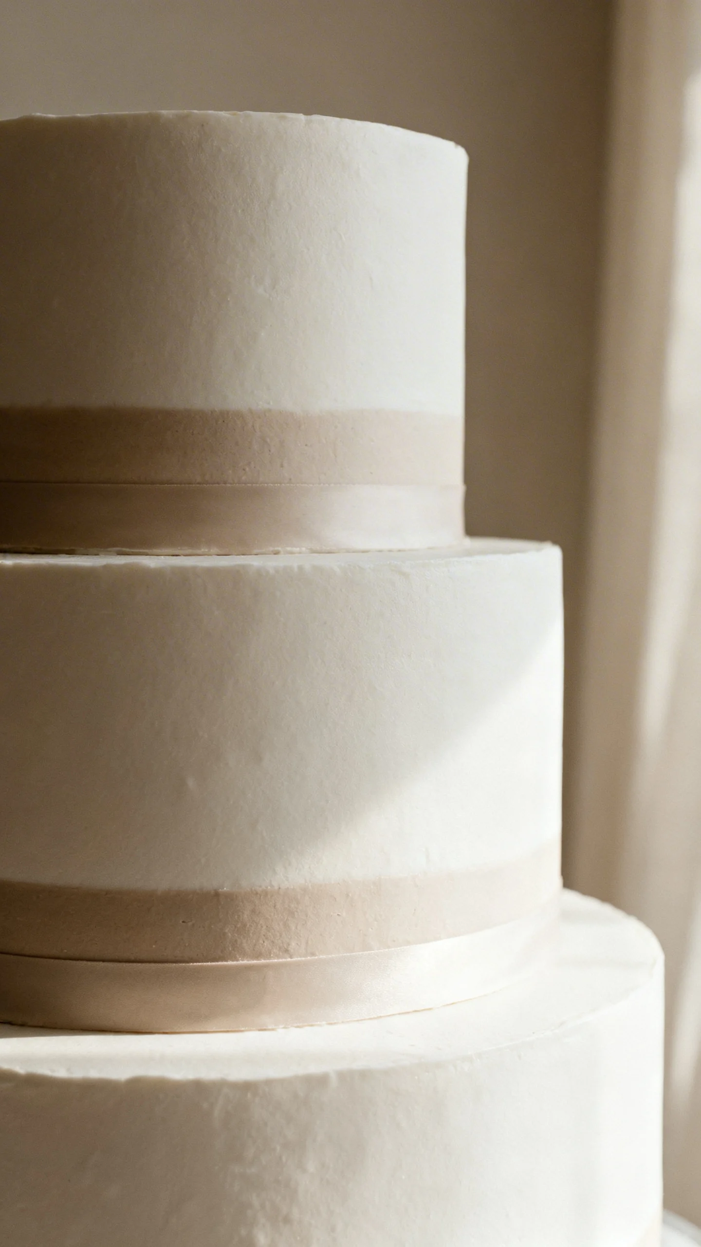 A simple ribbon can make a cake feel instantly finished and intentional. Choose a matte or satin ribbon in white, ivory, champagne, or a muted tone pulled from your linens. Keep the width consistent and the edges crisp for the cleanest look. This detail also photographs beautifully and works with both buttercream and fondant.