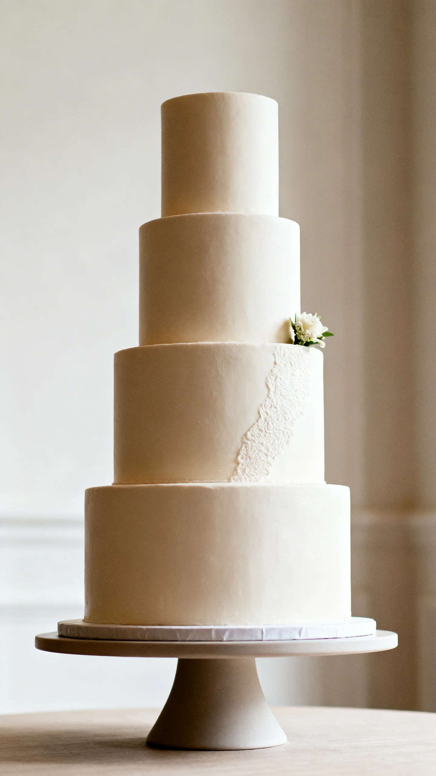 Texture adds dimension while staying minimal, as long as it’s controlled and consistent. Think delicate horizontal ridges, smooth palette-knife sweeps, or subtle stucco-style buttercream. Keep the texture uniform across tiers for a cohesive finish. This approach looks stunning in photos because it catches light without needing extra decoration.