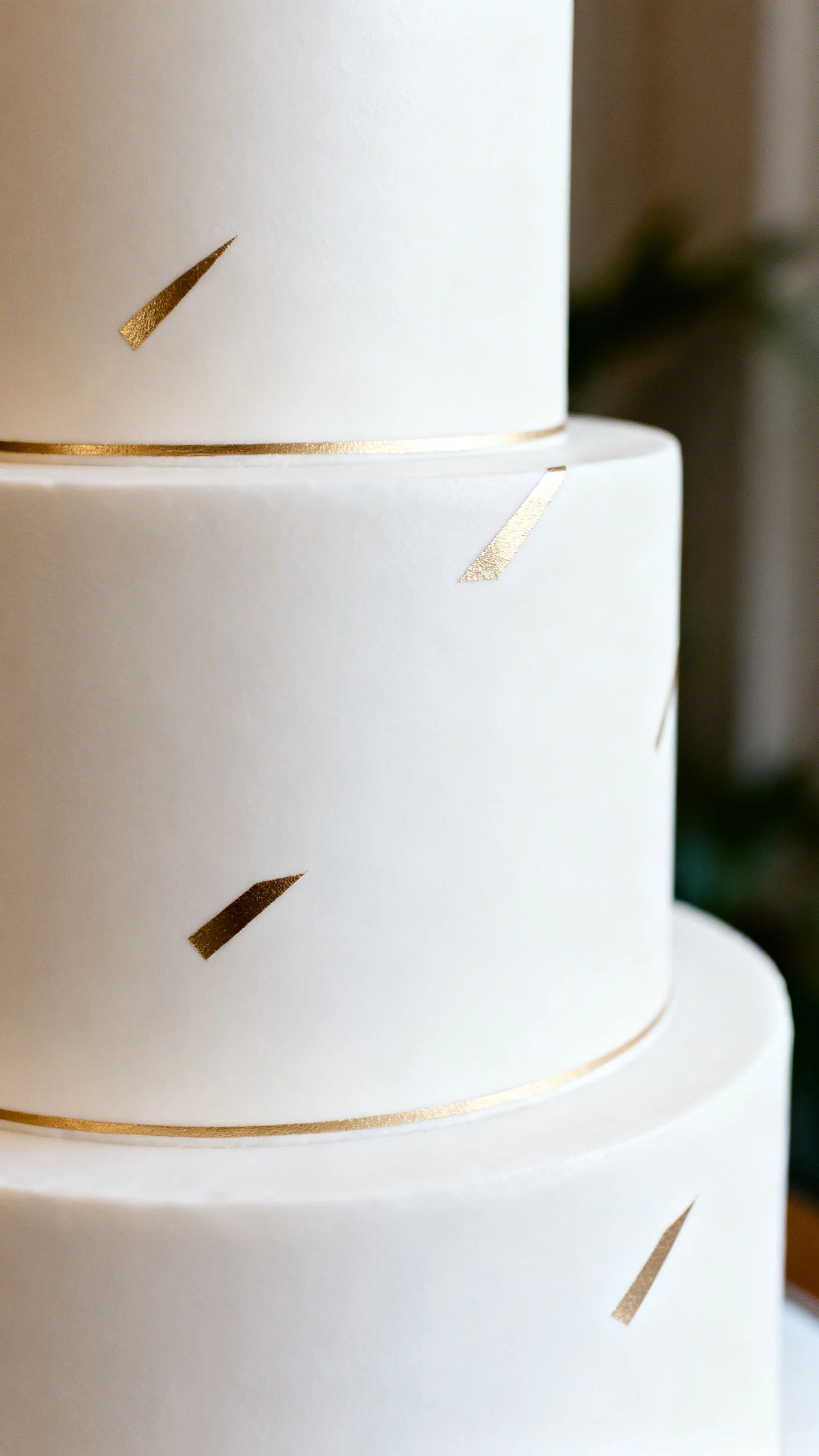 Minimal metallic can look refined when it’s used sparingly and with the right finish. Think a thin gold line, tiny gold leaf flecks, or a soft brushed champagne accent—never full coverage. Keep metallic details asymmetrical and small so they feel modern, not ornate. Pair with clean tiers for that “quiet luxury” effect.