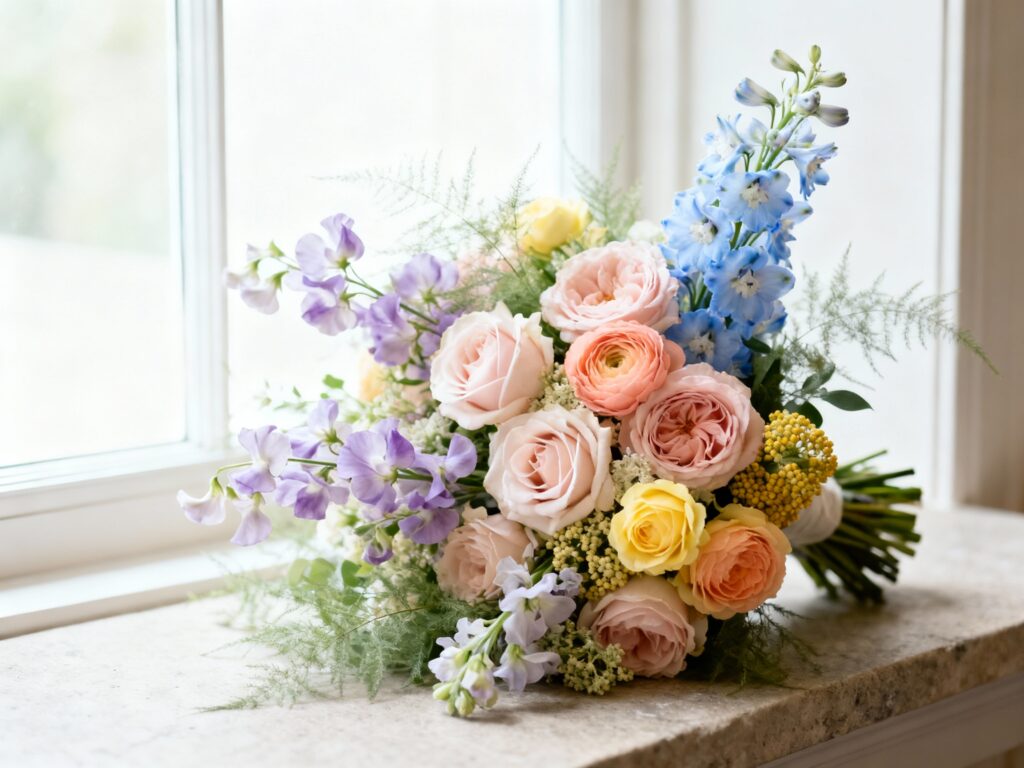 Below are five pastel flower picks that consistently photograph beautifully—whether you’re doing a garden party ceremony, a modern minimalist moment, or a classic ballroom vibe.