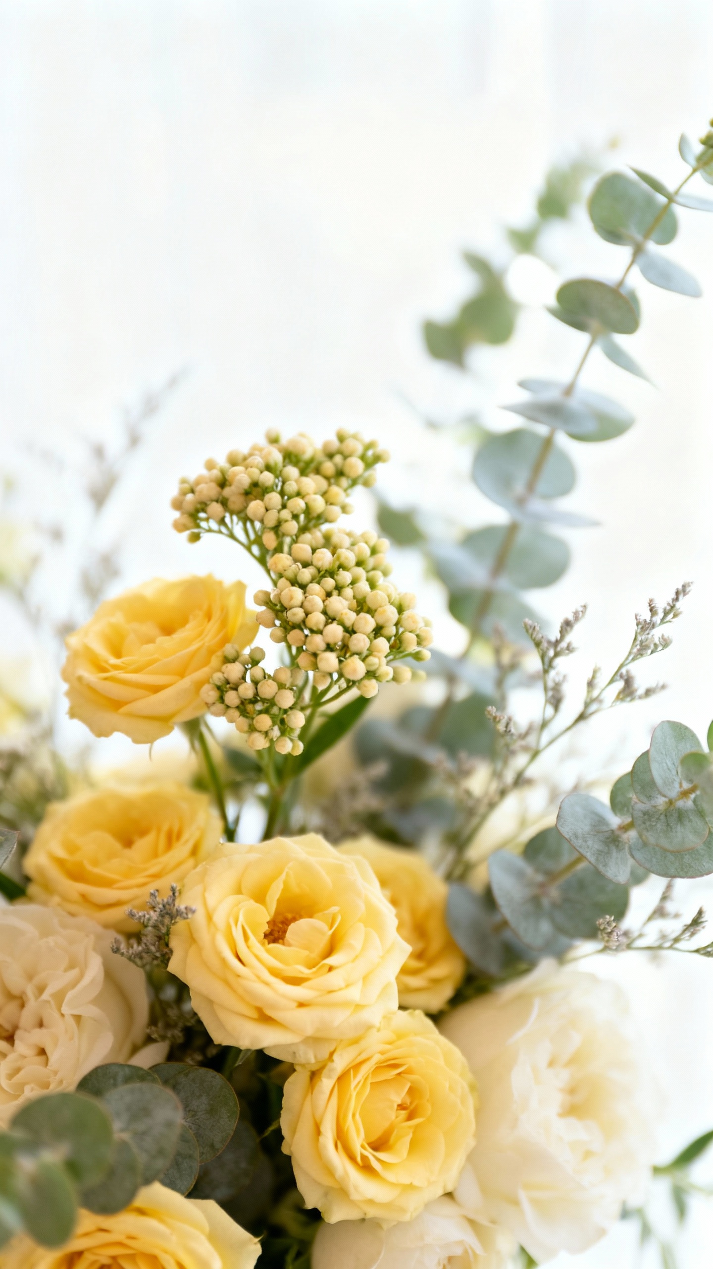 Soft, matte greens photograph more editorial than super-shiny leaves. Eucalyptus (seeded or silver dollar), olive, and ruscus are popular because they don’t steal the show and they add movement. If you want extra softness, ask for airy accents like fern or a touch of jasmine vine for trailing lines.
