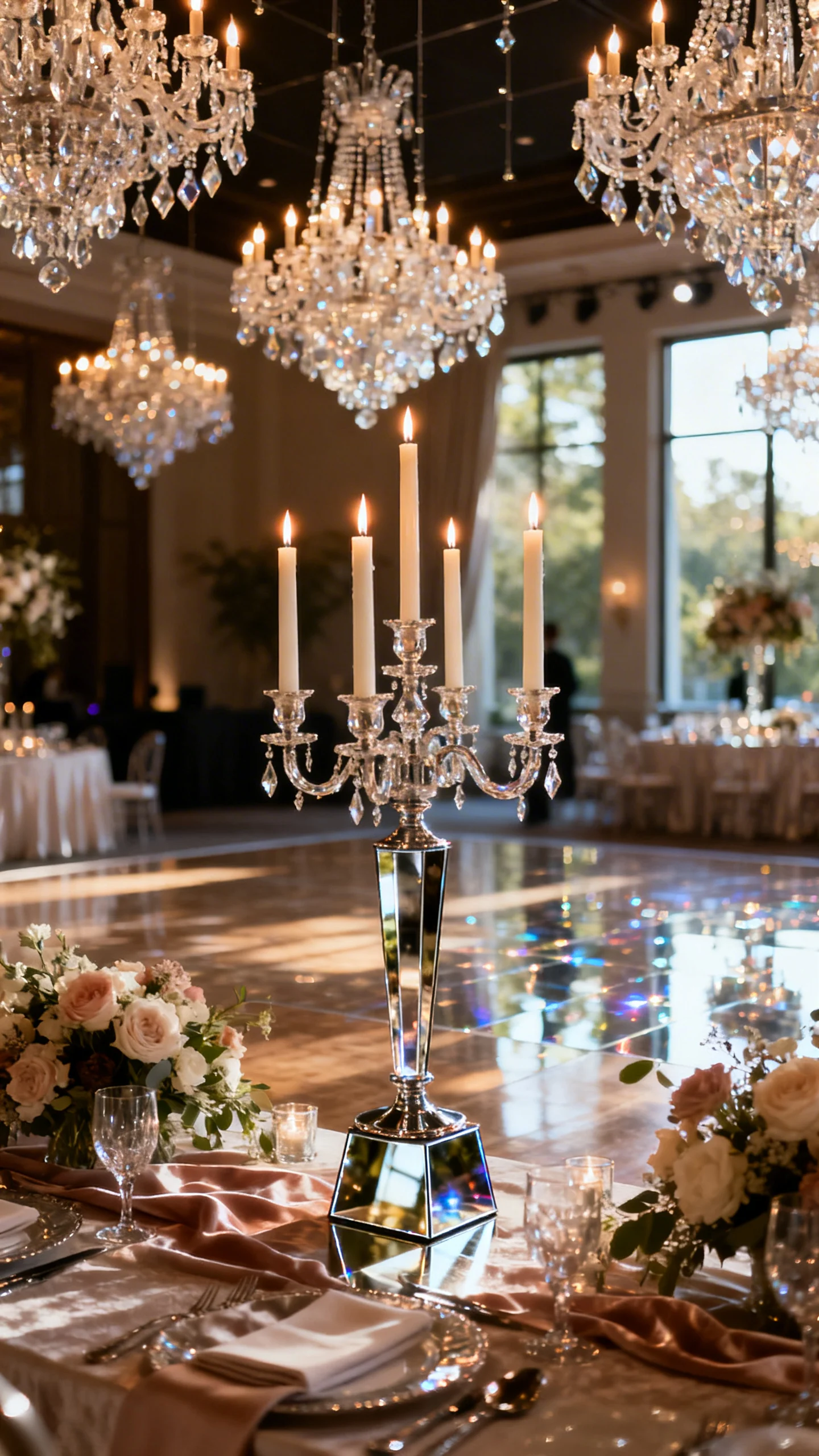 4) Crystal chandeliers and candlelit glow