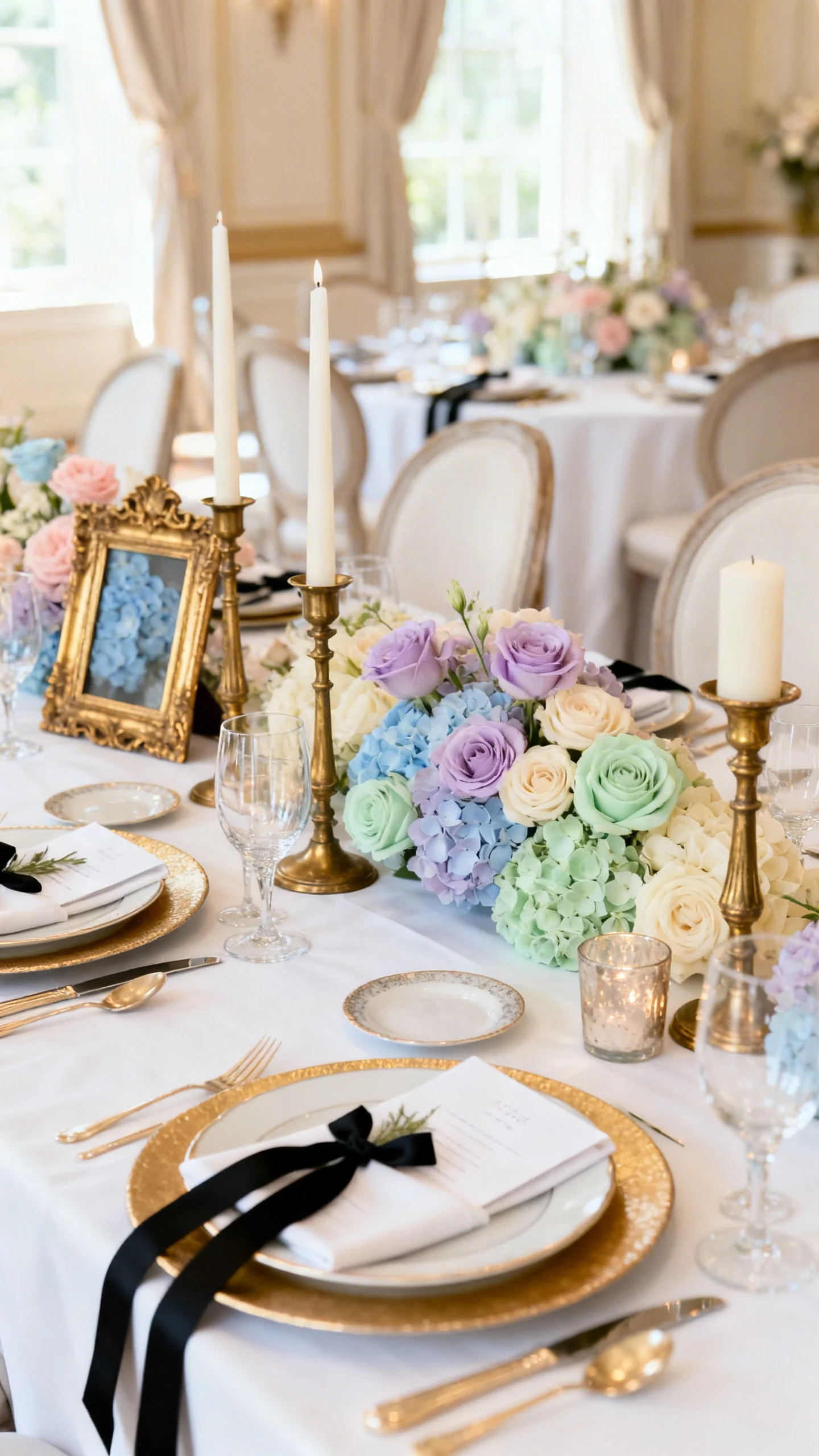 Pick a tight palette (two pastels plus ivory and gold) and repeat it consistently. Focus your most ornate moments on a few hero areas—ceremony backdrop, head table, cake display—then keep everything else airy with candles and fresh florals.