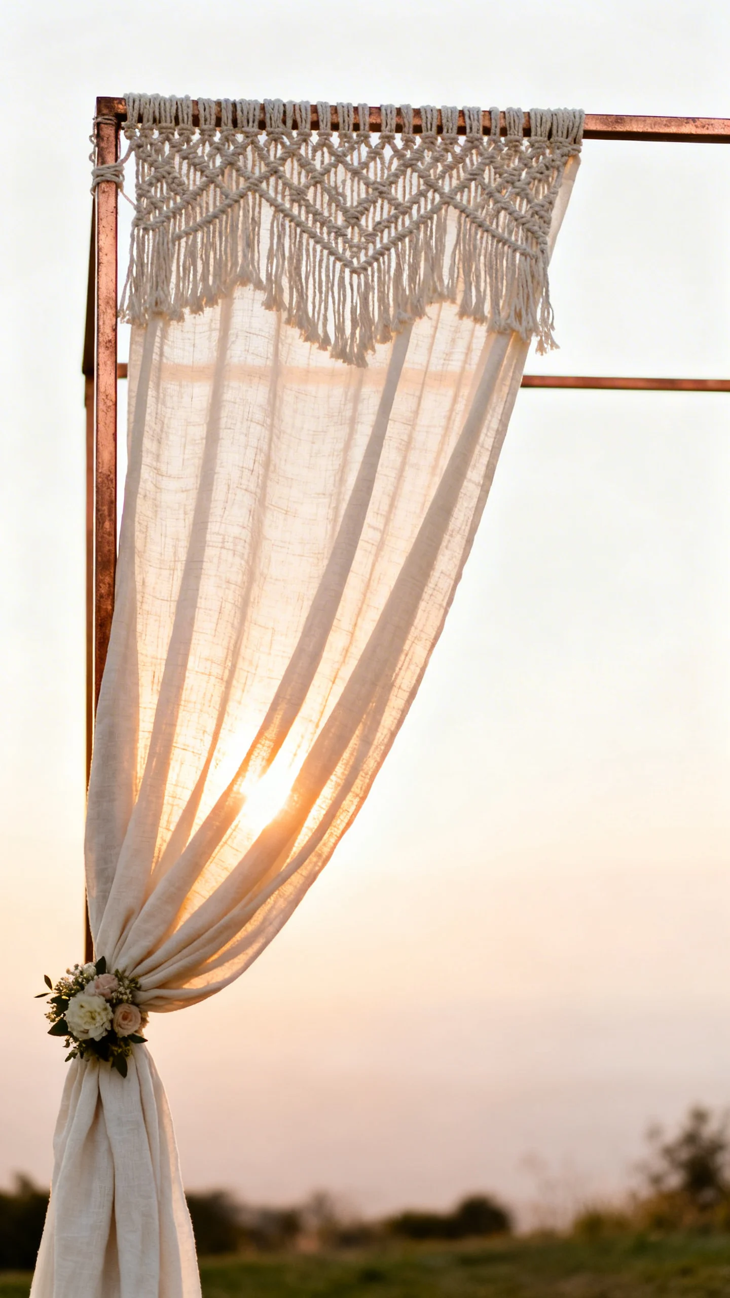 Macramé or Fabric-Draped Arch for Soft Rustic