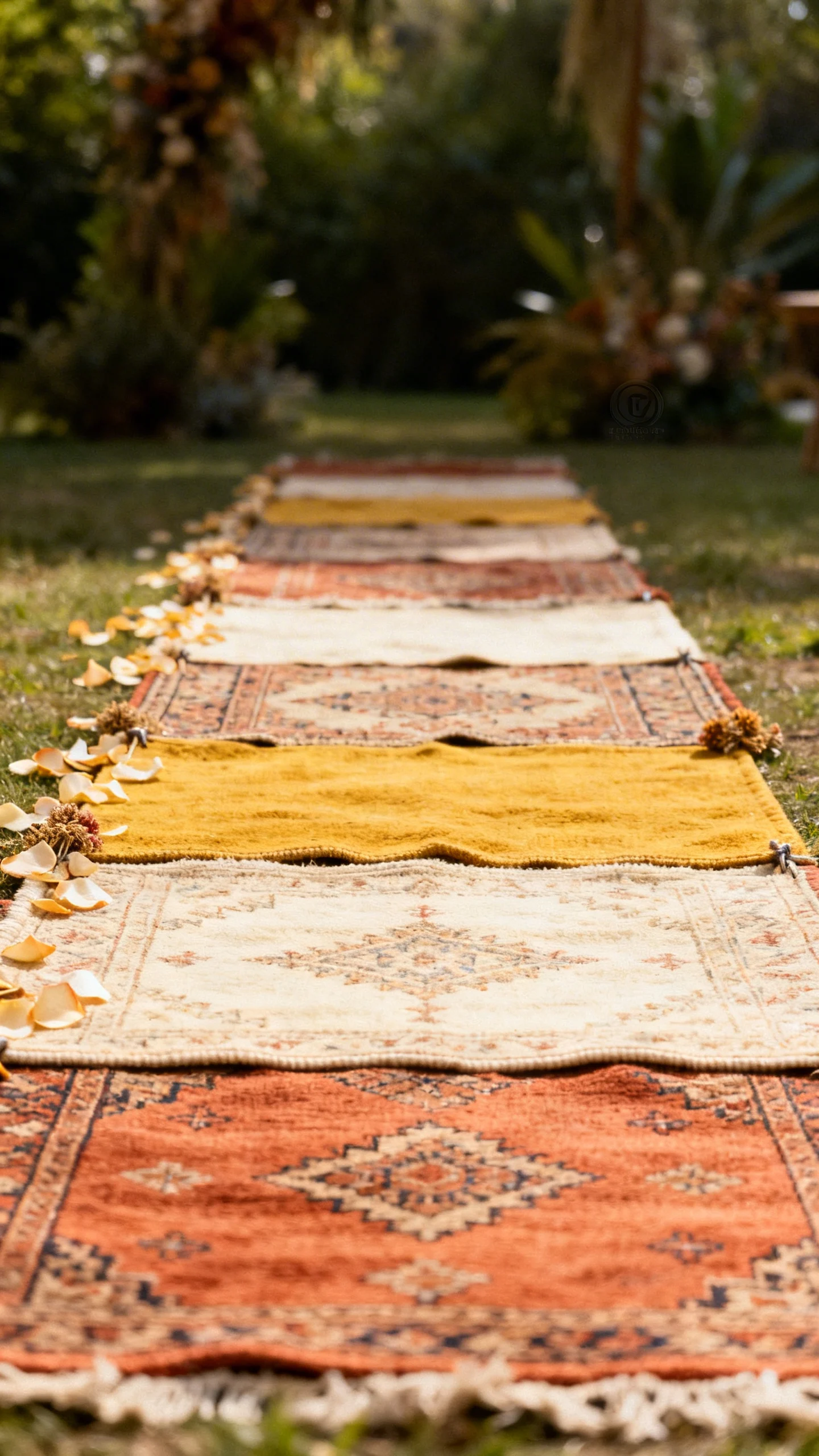 Rustic Aisle Runner Alternatives: Rugs and Petals