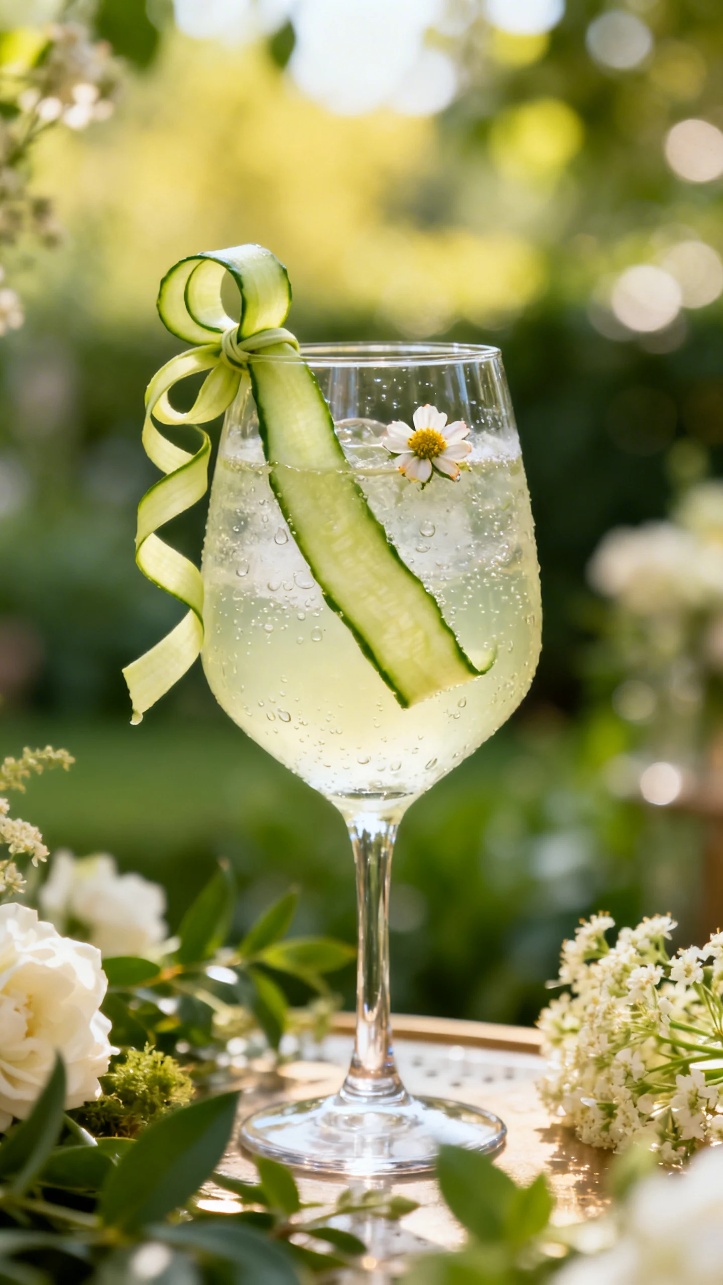 Keep it light, floral, and fresh with cucumber, elderflower liqueur, sparkling wine, and a squeeze of lime. Serve it in a stemmed glass with a ribbon-tied cucumber ribbon or a tiny edible flower for instant garden vibes. Name it after your venue or favorite park to make it feel custom. Add a non-alcoholic version using elderflower syrup and soda so everyone can join in.