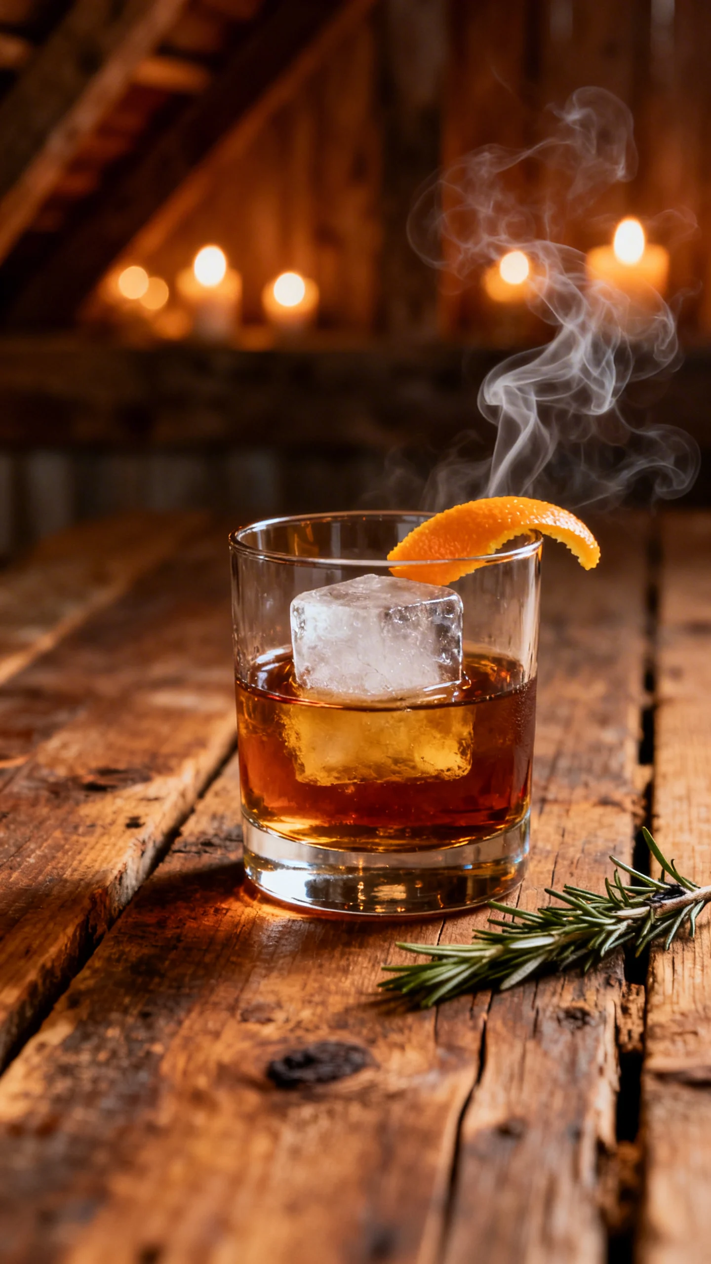 This one brings cozy, woodsy energy with bourbon, maple syrup, bitters, and an orange peel. Add a quick smoke moment (smoked glass or smoked rosemary) to echo barn beams and candlelight. Serve over a large cube to keep it strong but smooth through speeches and toasts. Pair it with a second option that’s lighter so your menu feels balanced.