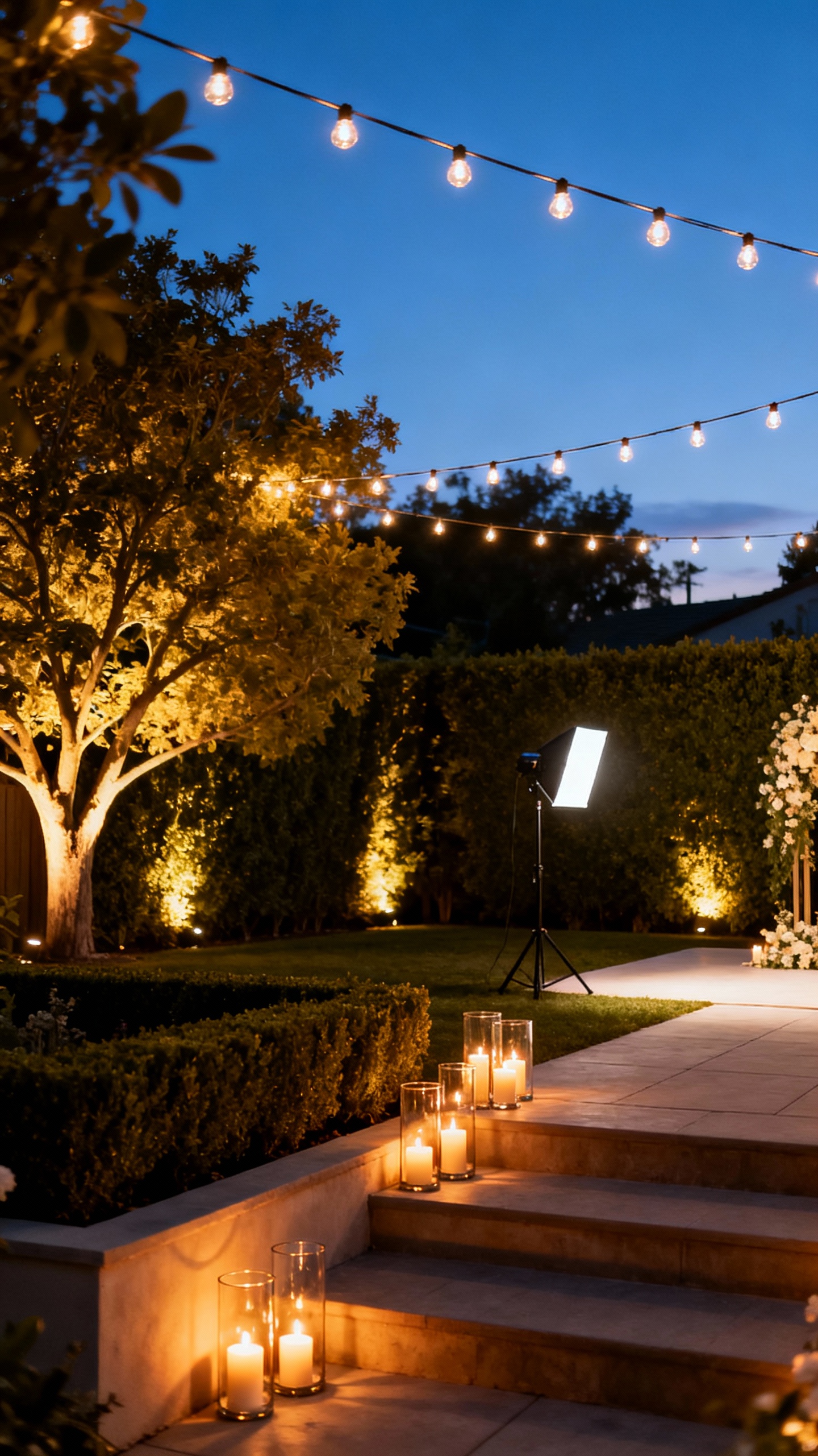 At-home lighting is all about layers: overhead string lights for ambience, uplights or LED candles for depth, and a few targeted lights for faces. If your ceremony starts near golden hour, plan for the light to drop fast—add pathways and a softly lit bar area so guests can move around safely. A simple rule: if you can’t read a place card, it’s too dark for comfortable mingling (and photos).