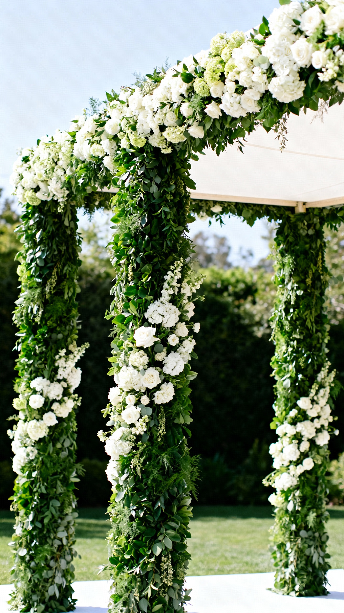 5) Four Floral Pillars (Chuppah-Adjacent, Ultra Photogenic)