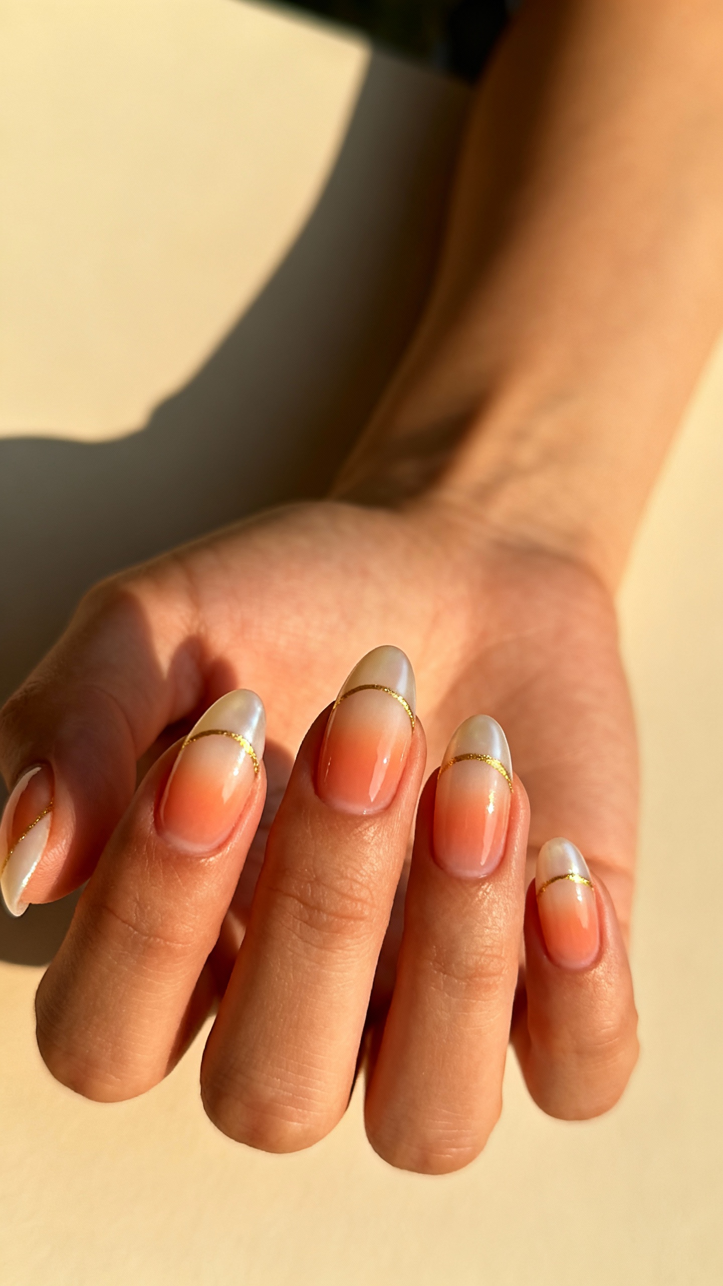 3) Golden Hour Aura Ombré (Peach-to-Pearl-to-Gold)