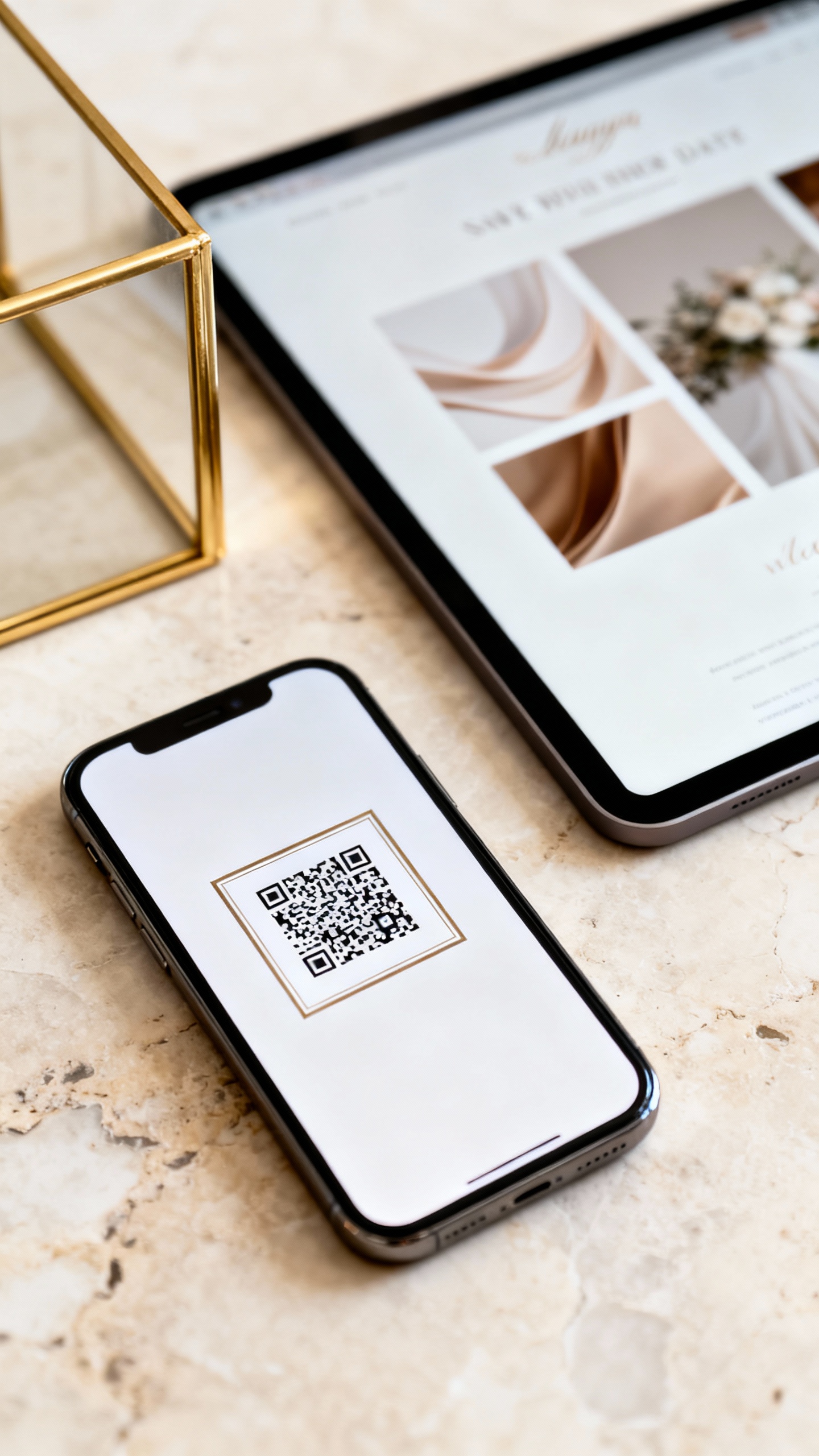Make the save the date simple and elevated, then link to a gorgeous landing page that does the heavy lifting. Use a framed QR code (thin border, rounded corners) and match the website to your invite vibe with the same fonts and colors. It feels luxury because it’s cohesive—and it makes RSVP and travel info feel effortless for guests.