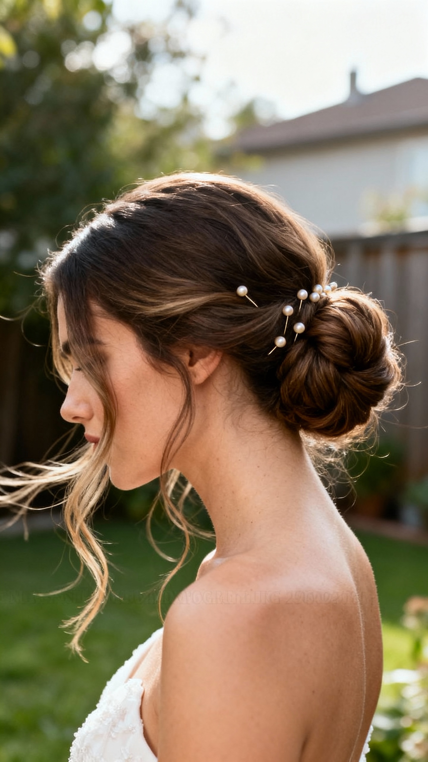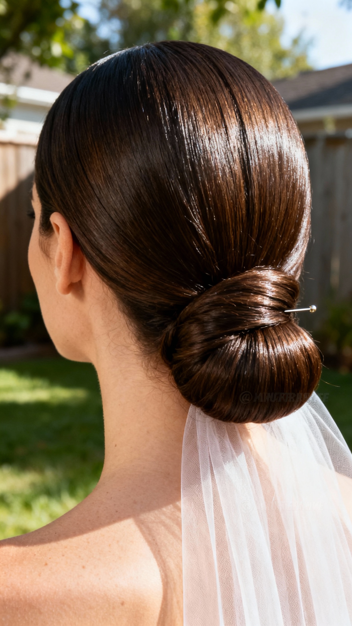 If your vibe is “backyard wedding but make it editorial,” a sleek low chignon is timeless and surprisingly DIY-friendly. It flatters oval and diamond face shapes, and it’s amazing if you prefer a clean look that won’t frizz the second you step outside. Use a smoothing cream and a boar bristle brush, then secure the chignon with hairpins placed vertically into the bun for a stronger anchor. This is also one of the easiest styles for veil placement: tuck the comb right above the chignon and smooth hair over the seam.