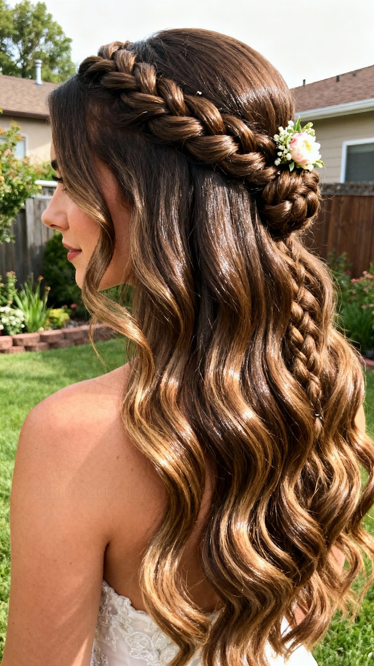 If you want your hair down but still want it off your face for backyard breezes, this half-up twist is your sweet spot. It flatters medium to long hair and looks especially pretty on square and long face shapes because the crown detail adds softness and width. Prep with a light texture spray before twisting so the sections don’t slip, then pin in an “X” shape for extra security. This style also loves a small clip, mini comb, or pearl pins tucked where the twists meet.