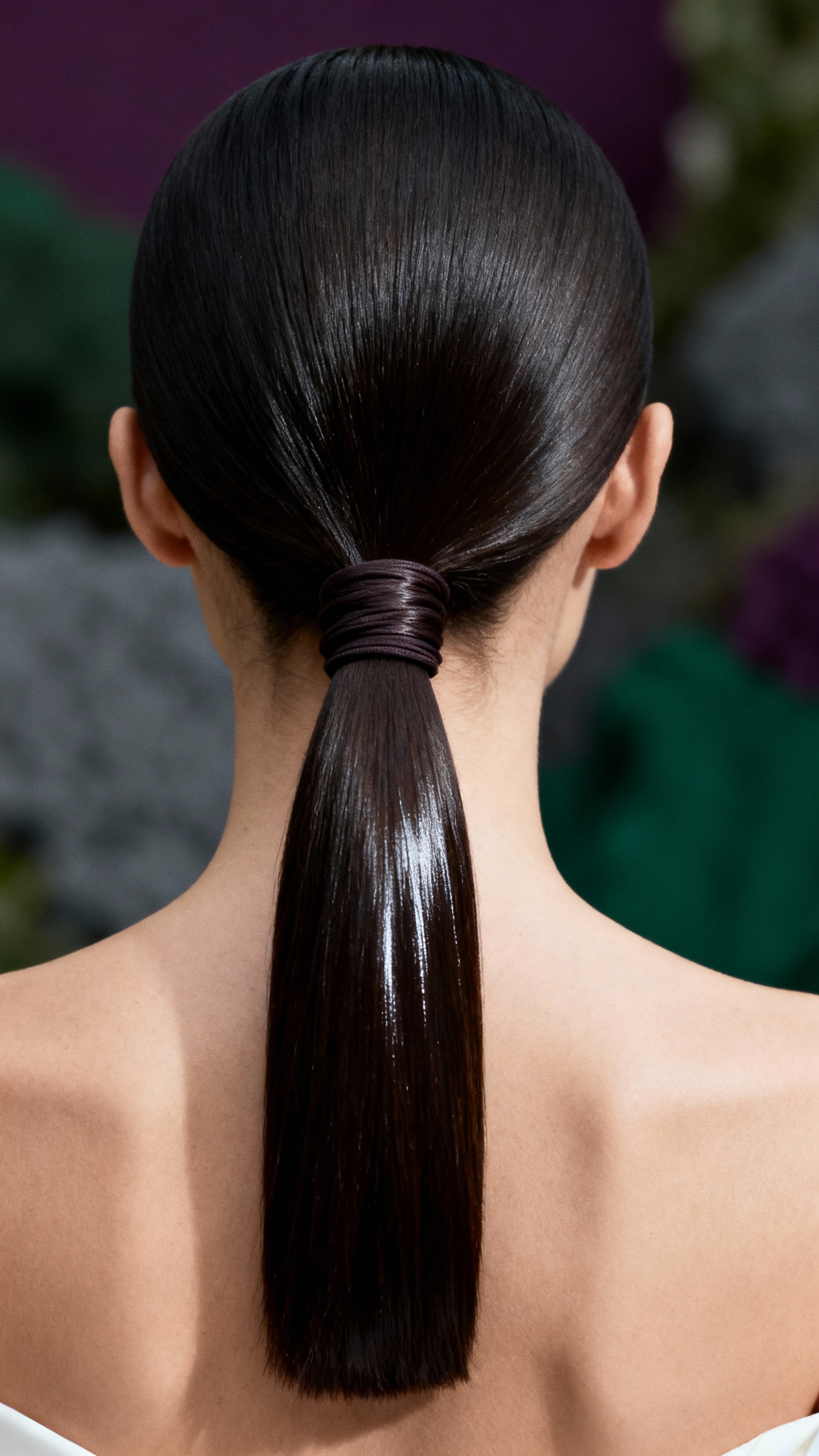 5) Sleek Low Pony With Wrapped Base and Glossy Ends