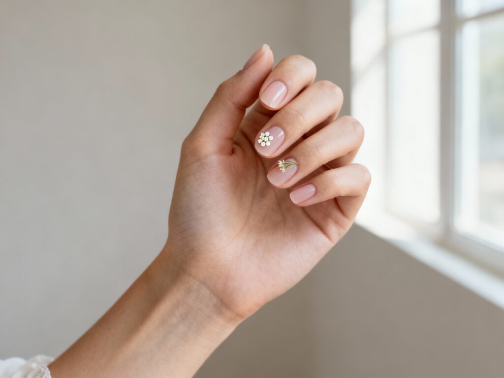 Below are five elegant, minimal-bloom wedding nail ideas made specifically for short lengths—think “soft romance” with just enough detail to feel special.