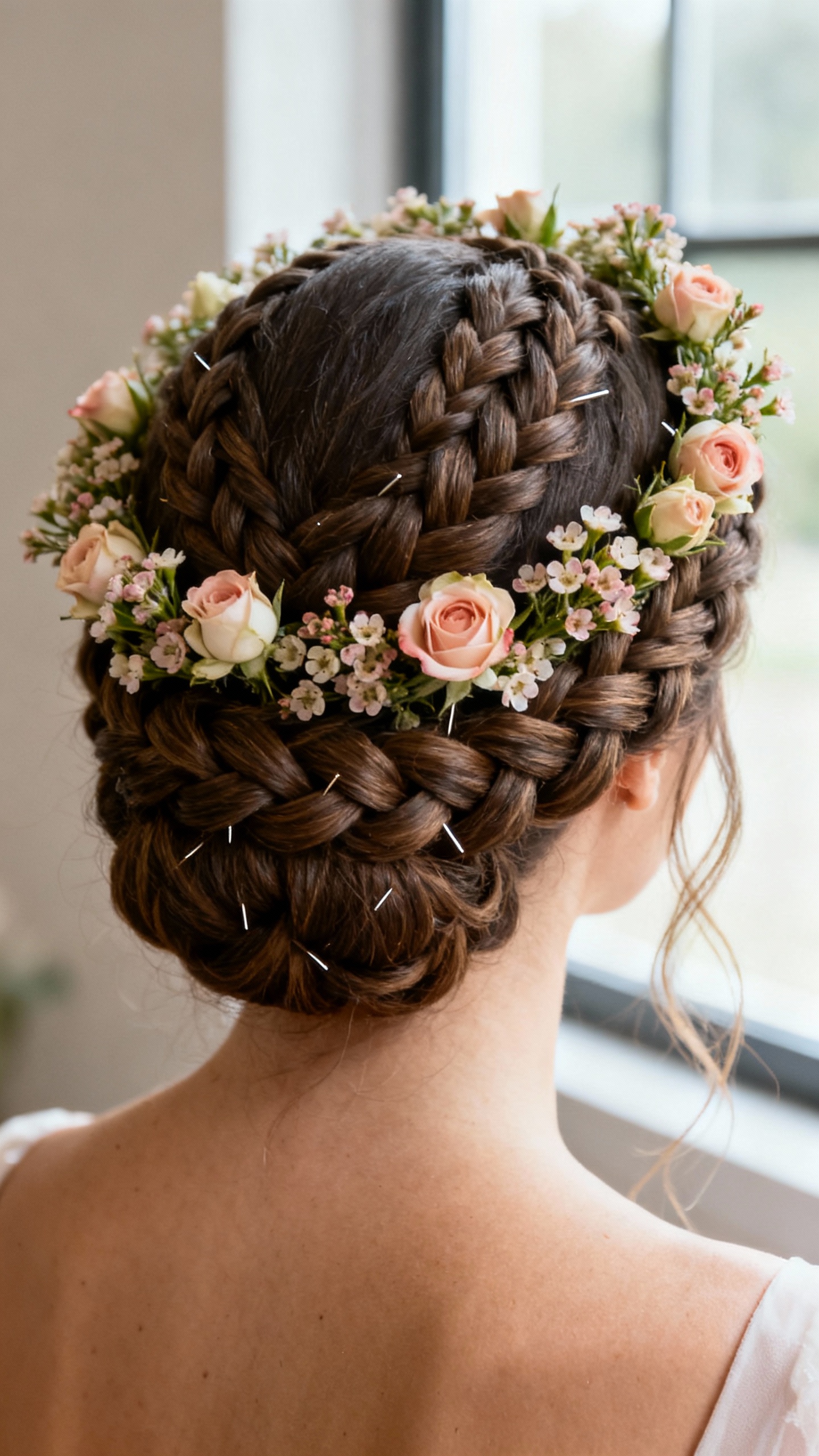 3) Floral Halo Braided Updo (The Luxe Wreath Moment)