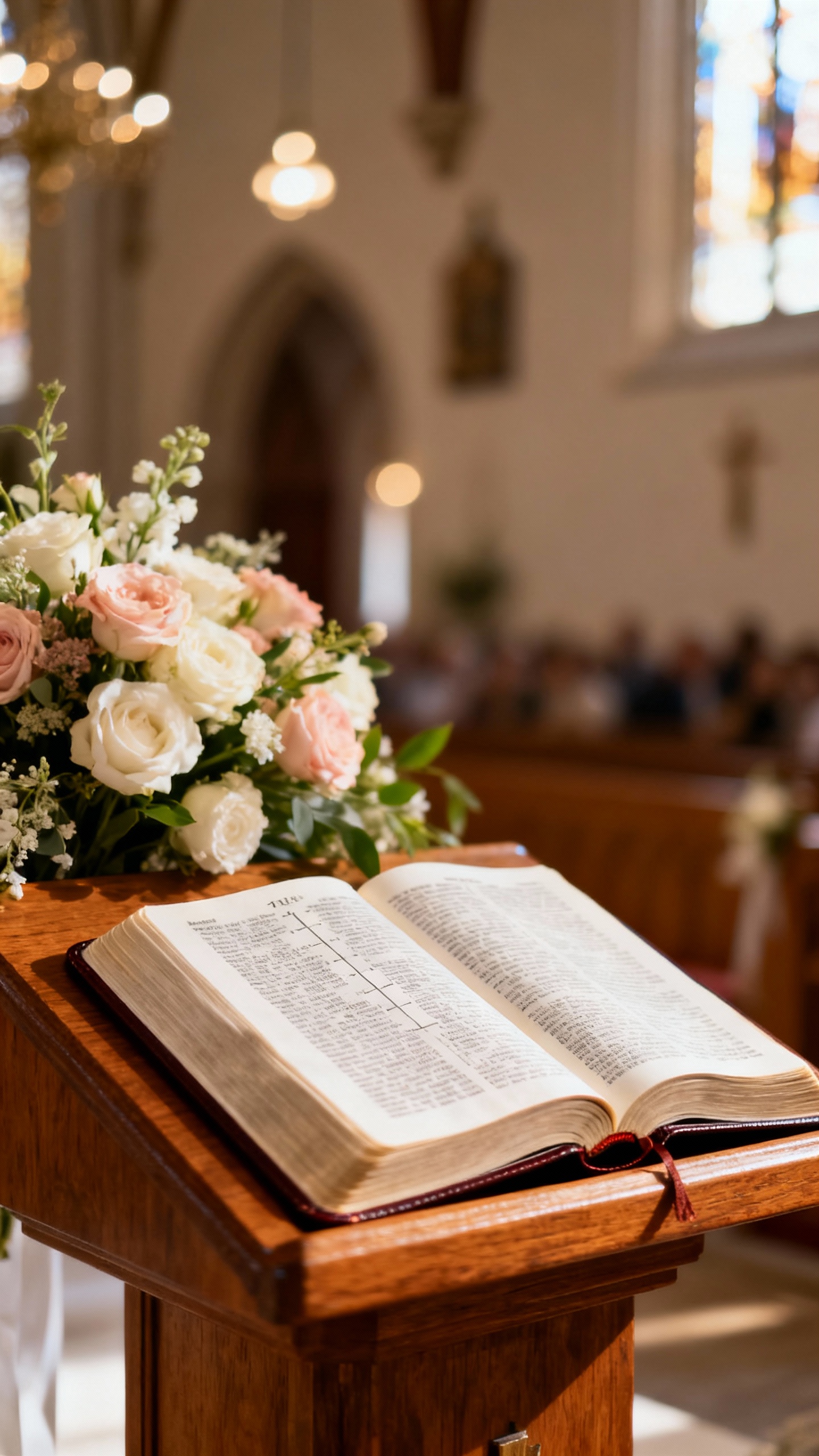 Pick 1–3 scripture readings for your ceremony and one “theme verse” to anchor the day (think: your vows, sermon, and even signage). This helps your officiant create a message that feels personal, not generic. Bonus: your theme verse can guide your color palette and paper goods vibe—minimal, romantic, classic, or modern.