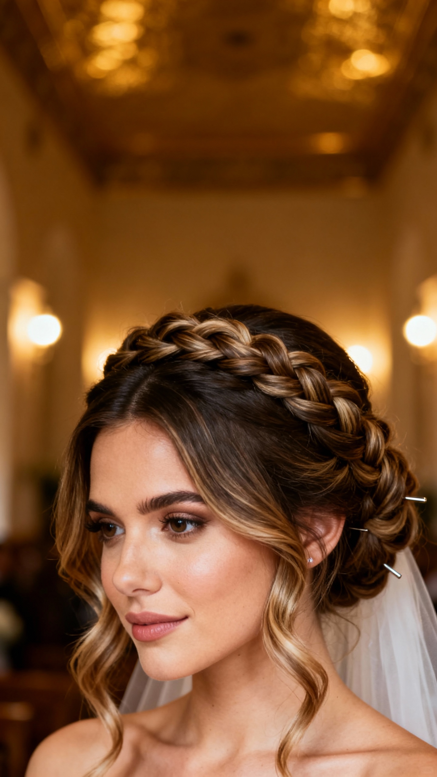 This style is a small-space hero because it looks detailed up close while keeping hair off your face for mingling and dancing. It flatters most face shapes (especially square and round) and gives a soft, airy vibe that reads “bridal” without being too formal. Practical tip: if you’re wearing a veil, place the comb just under the twist line so the twist hides the attachment and the crown detail still shows from the front.