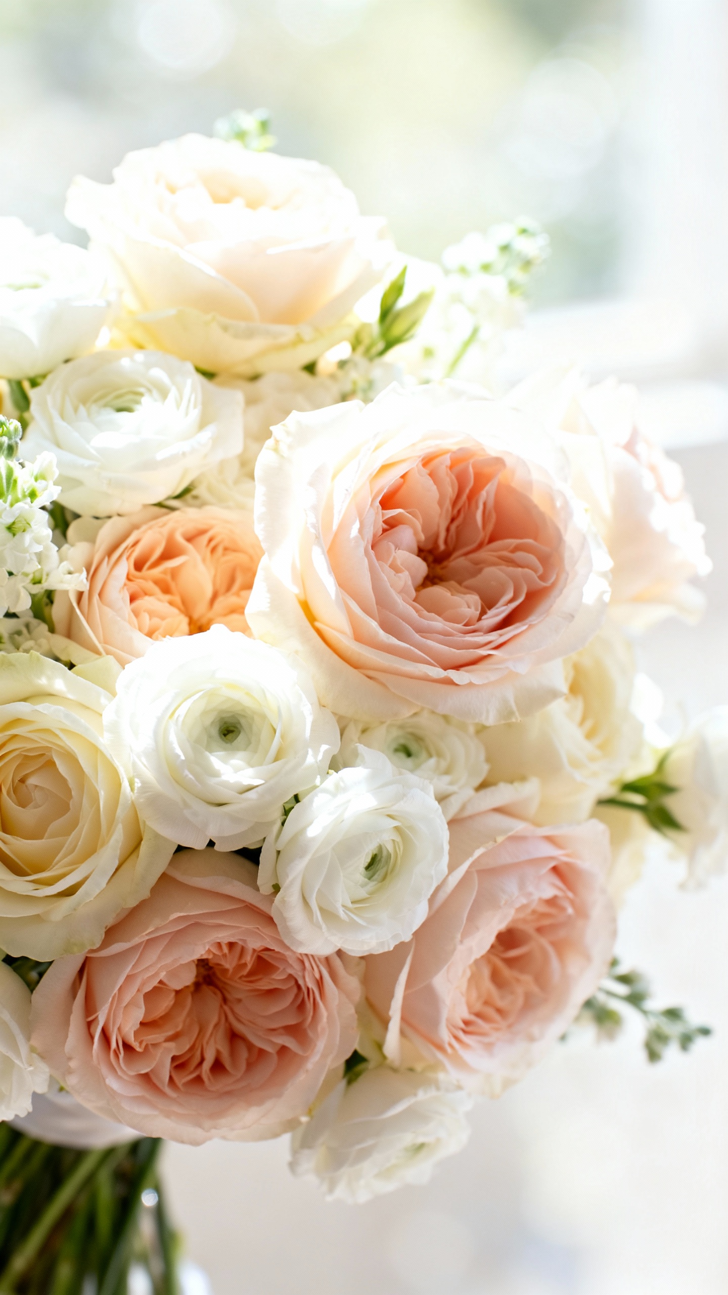 Ask for dimensional ingredients: a base flower (like garden roses), a secondary texture (spray roses or ranunculus), and one airy element (sweet pea, jasmine vine, or light greenery). Depth comes from variation—different bloom sizes, a few buds, and intentional negative space. A gentle asymmetrical shape also photographs more editorial than a perfect round ball.